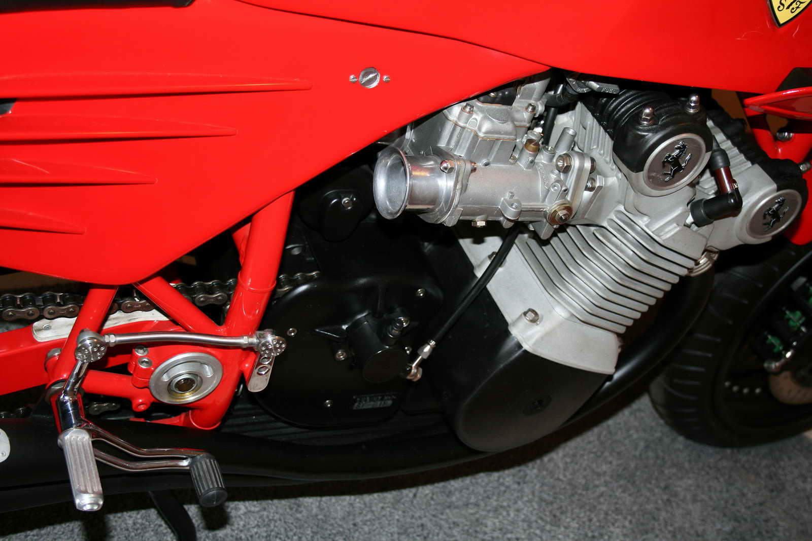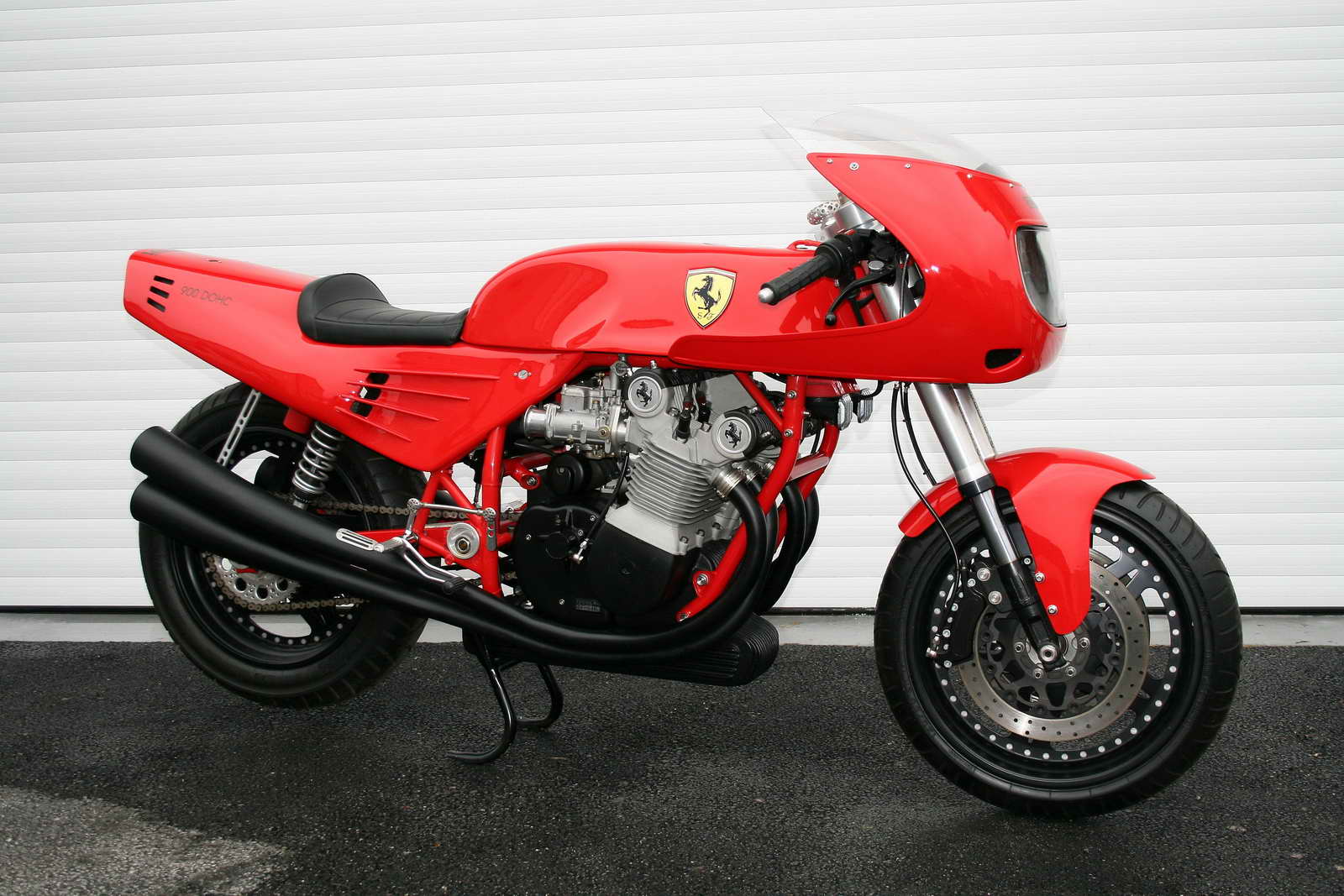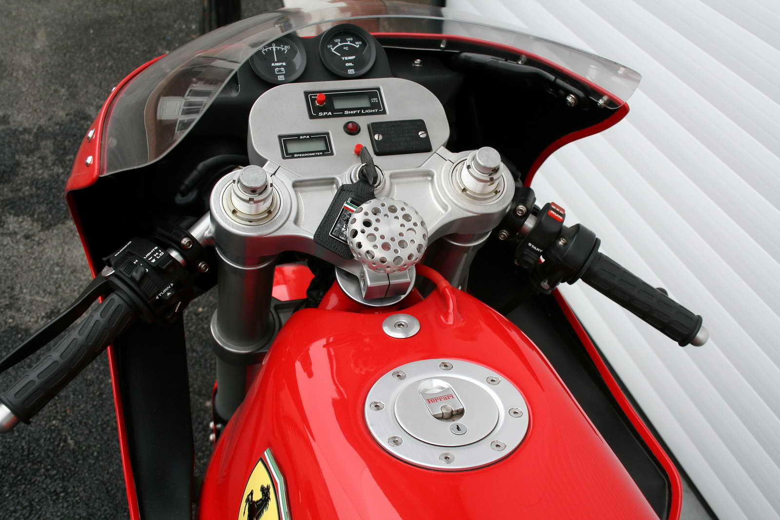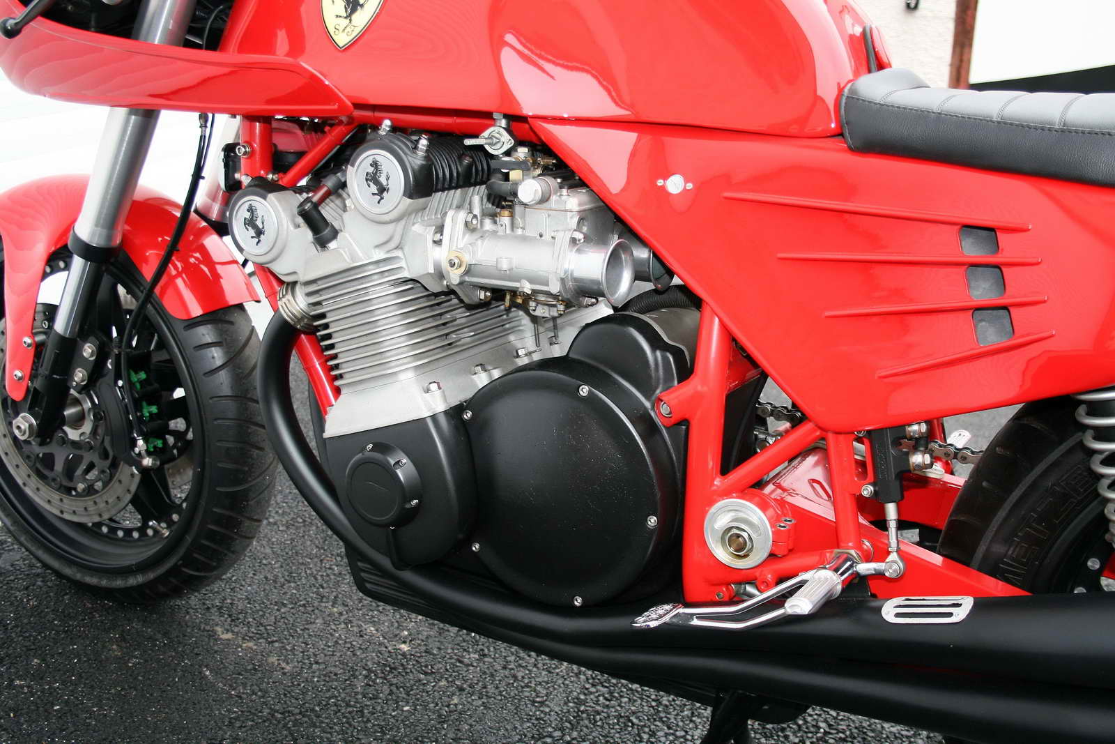 “Érase una vez….” Un ingeniero llamado David Kay (un reputado especialista en la marca de motocicletas italiana MV Agusta), que tenía el sueño de rendir un merecido homenaje al difunto “Il Commendatore» Enzo Ferrari. Como lo mejor que sabía hacer era diseñar motos, propuso a Piero Ferrari, hijo del fundador de la marca de Maranello, tal posibilidad, rogándole le permitiera incluir los logotipos del “cavallino rampante” en dicho ejemplar único.