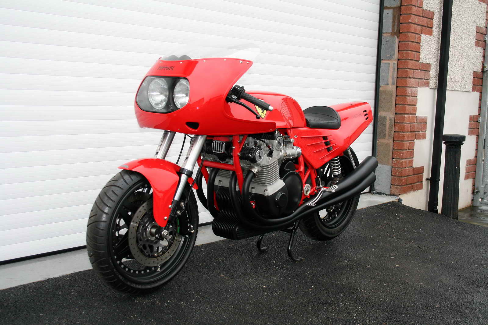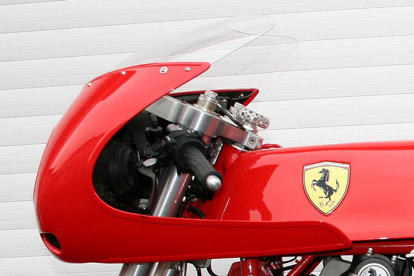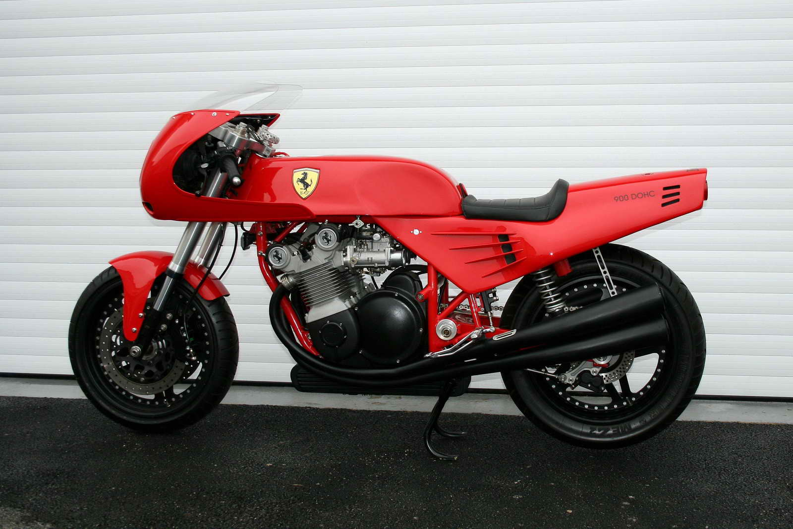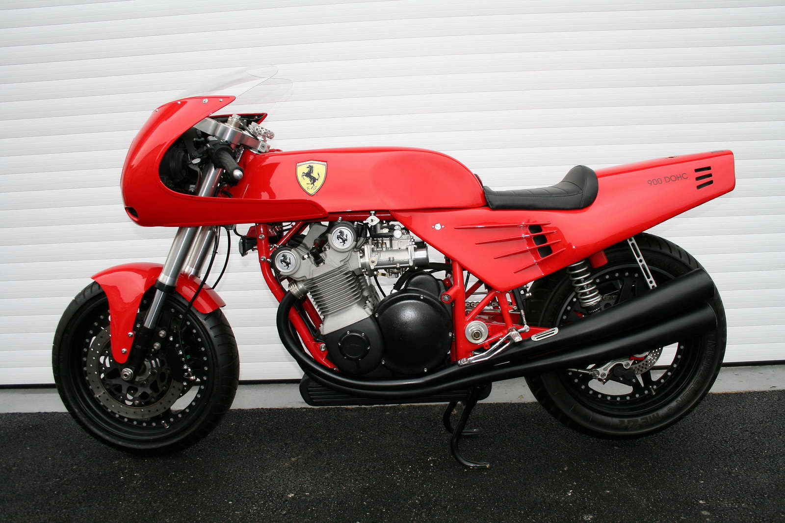“Érase una vez….” Un ingeniero llamado David Kay (un reputado especialista en la marca de motocicletas italiana MV Agusta), que tenía el sueño de rendir un merecido homenaje al difunto “Il Commendatore» Enzo Ferrari. Como lo mejor que sabía hacer era diseñar motos, propuso a Piero Ferrari, hijo del fundador de la marca de Maranello, tal posibilidad, rogándole le permitiera incluir los logotipos del “cavallino rampante” en dicho ejemplar único.