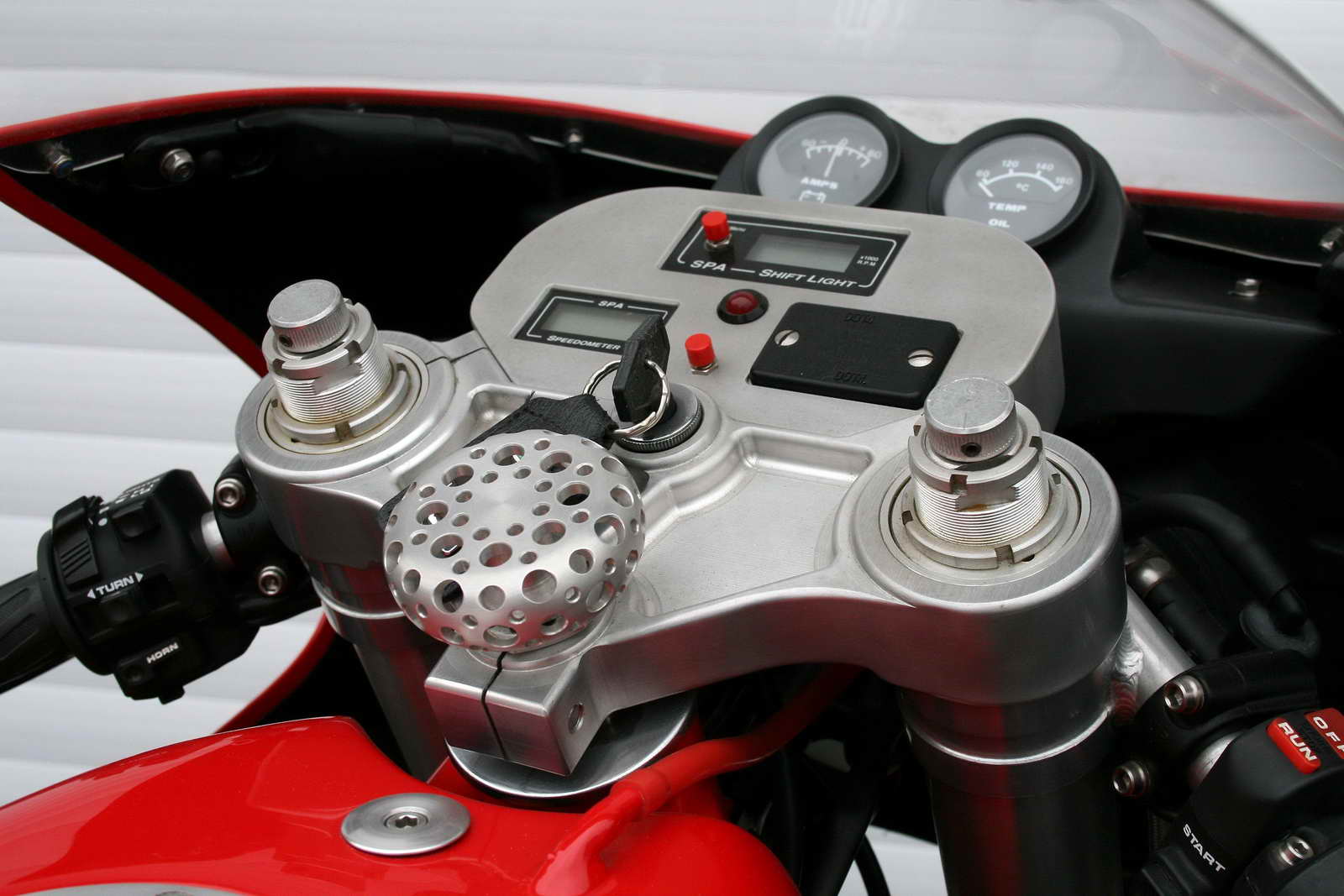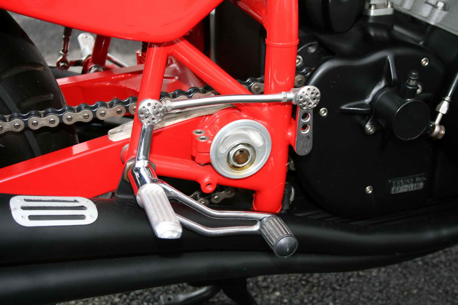 El chasis tubular está realizado en tubo de acero Reynolds 531, lo que garantiza la necesaria rigidez así como un contenido peso. Los acabados del mismo son realmente magníficos, con un apreciable cuidado por el detalle, que también sale a relucir en elementos tales como el cuadro de mandos digital o en un inusual (para la época) amortiguador de dirección.
