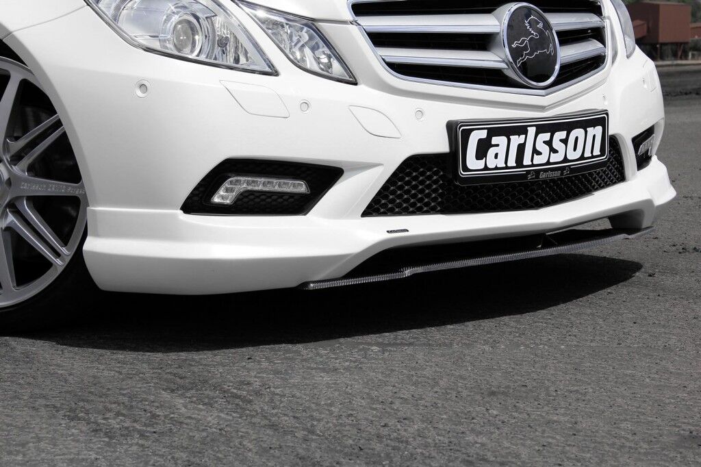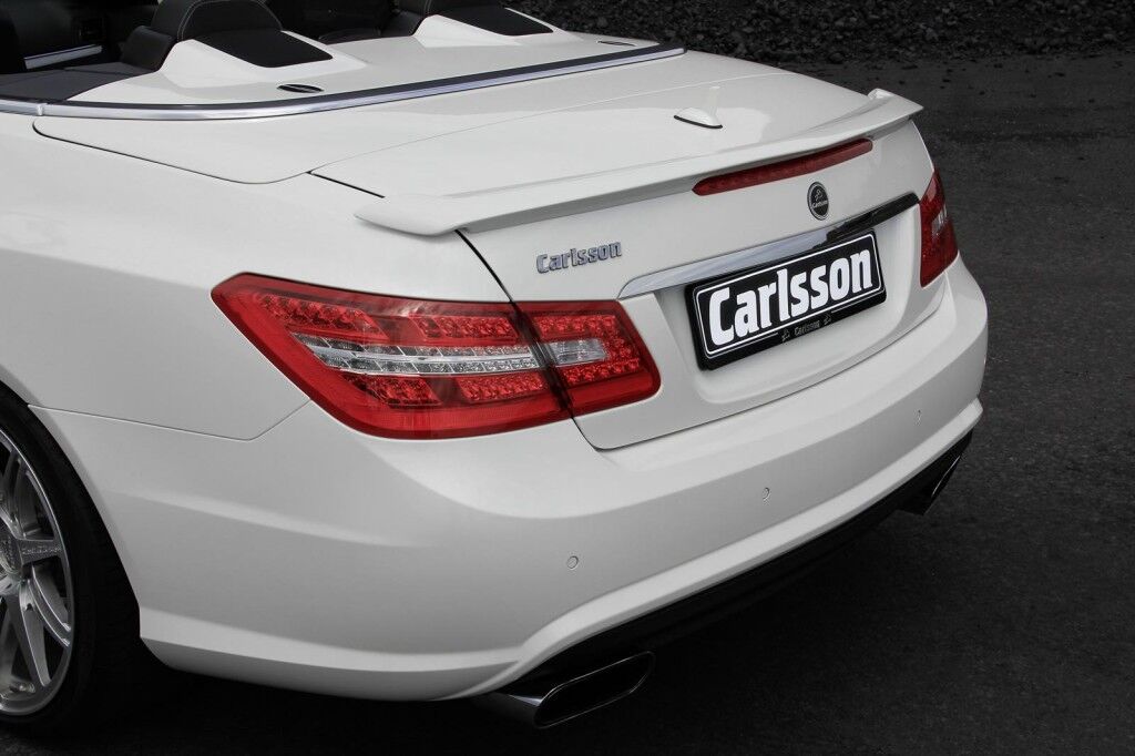 Resulta que Carlsson ha decidido aparecer en la vida del Clase E, con su caballo saltarín. Se trata de darle una nueva perspectiva. Por ese motivo y sin perder su habitual estilo, aporta un spoiler delantero protuberante. Además le suma unos nuevos faldones laterales en carbono y concluye con un alerón plano que se levanta sobre la zaga. Eso sí, tímidamente. Como quien no quiere la cosa. Del mismo modo, resultan llamativas las llantas de 20” y las terminaciones que contiene el escape en un cromado brillante. Lo más chic.