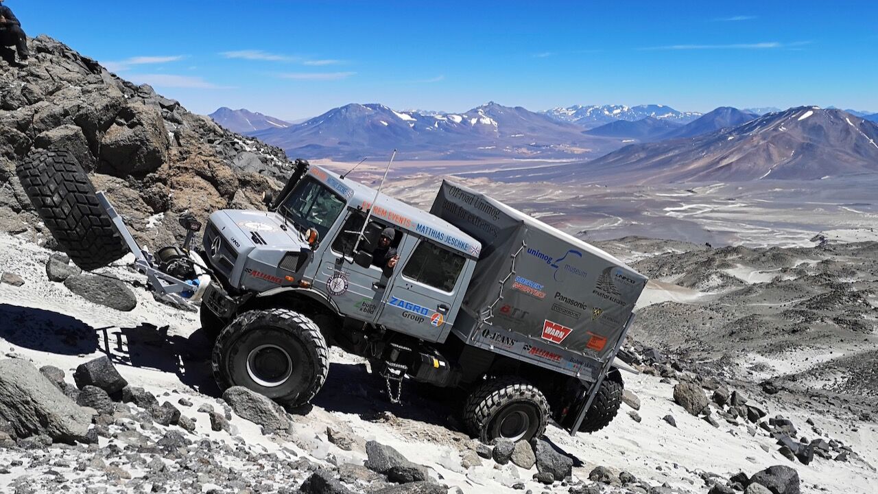 Uno de ellos consiguió romper ese récord al llegar a 6.694 metros sobre el nivel del mar, superando su anterior marca que habían logrado con un Mercedes-Benz Zetros en 2014. Es el registro más alto para un vehículo de cuatro ruedas y para lograrlo fue necesaria una preparación específica. Los Unimog U 5023 utilizados llevaban neumáticos especiales, cabestrantes reforzados y un equipamiento más completo para hacer frente a cualquier imprevisto.