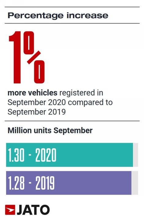 En cuanto al segmento más apreciado por los clientes de los 27 mercados europeos a los que ha tenido acceso JATO, los SUV siguen liderando por un margen considerable, manteniendo cautivo el 41,3 % de la cuota de mercado, seguidos de los subcompactos (19 %) y los compactos (17,7 %). Todos los demás tienen cifras de un dígito. En comparación con 2019, la participación de mercado de todos los vehículos electrificados fue del 11 %, con un total de 327.800 unidades comercializadas durante septiembre.