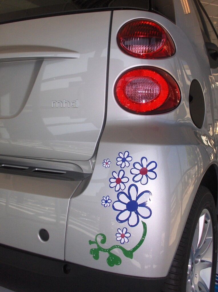 ¿Creías que lo tenías todo en el diseño de tu Fortwo? Pues estabas del todo equivocado porque Smart ha diseñado una serie de pegatinas para tu coche que podrás ponerlas con un set de vinilos decorativos. El nombre que han seleccionado para tan innovador hecho es: Smart to art. No es que se hayan comido mucho la cabeza al respecto pero la idea original, es. No cabe duda.