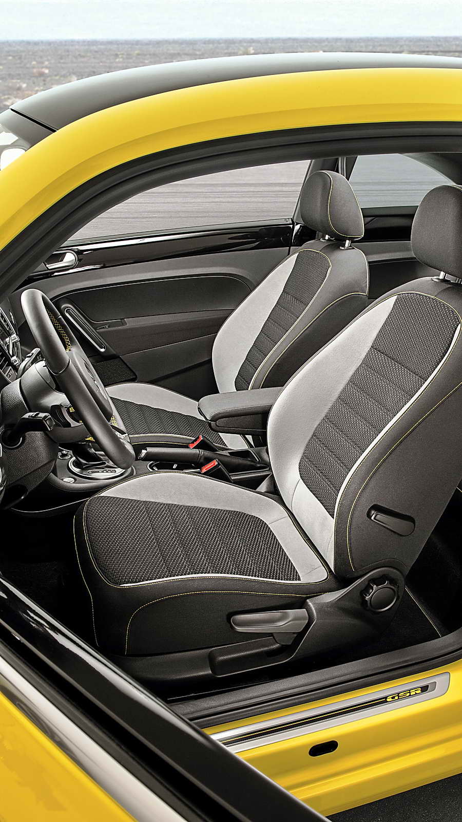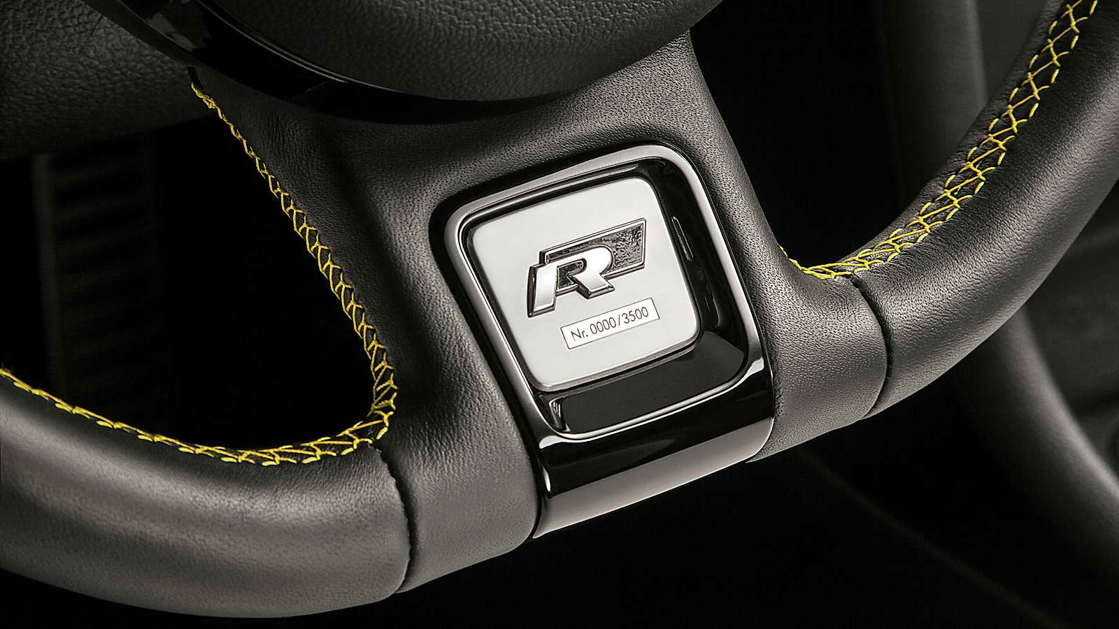 Mientras que el interior de la versión original era sumamente espartana, el de la nueva muestra un equipamiento acorde con la imagen exterior, donde destacan los asientos deportivos R-Line con pespuntes en contraste de color amarillo o un volante con el logo R-Line y una pequeña placa con el número correspondiente a la edición limitada (3.500). Tampoco conviene pasar por alto la personalización en elementos tales como la palanca de cambios, el freno de mano, alfombrillas, etc.