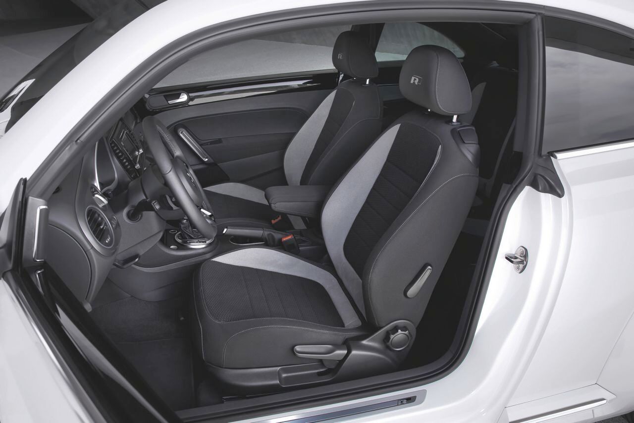 En segundo lugar, el paquete interior disponible en el Beetle incluye asientos deportivos con el logo R-Line en los reposacabezas delanteros, volante deportivo, pomo de la palanca de cambios y freno de mano de cuero, pedales de aluminio e inserciones decorativas en vanadio negro Dark Vanadium en el salpicadero.