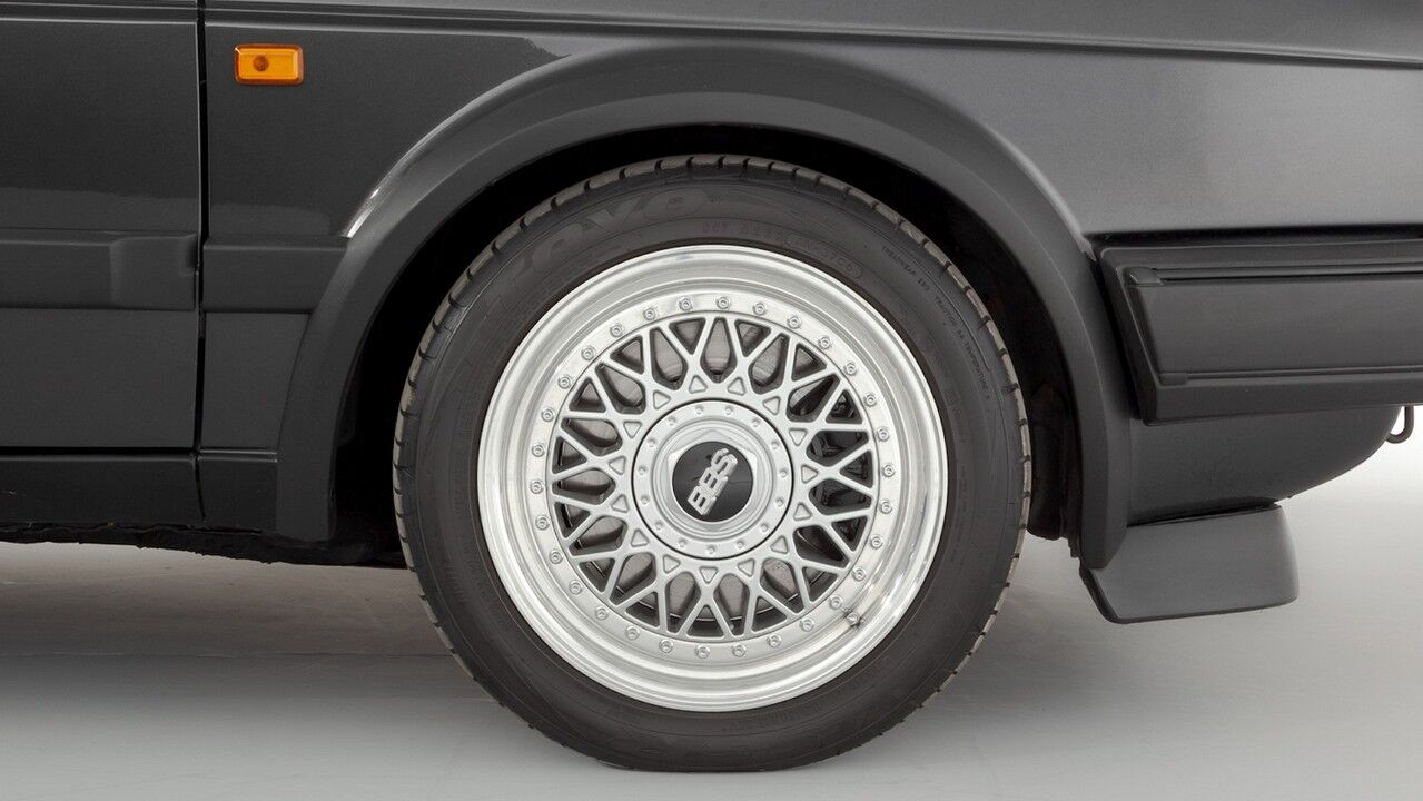 El exterior era sencillo, pero tenía algunas diferencias con respecto a un mero Golf de segunda generación. El G60 Limited abandonó la parrilla de cuatro faros del GTI por una configuración de dos unidades y sustituyó los detalles en rojo por azul. Había extensiones de plástico del arco de rueda sutilmente ensanchadas, un juego de llantas de aleación BBS RM de 15 pulgadas y un par de insignias de Volkswagen Motorsport muy discretas, lo suficiente como para no alertar a nadie sobre lo que había debajo de la carrocería o su elegante interior.