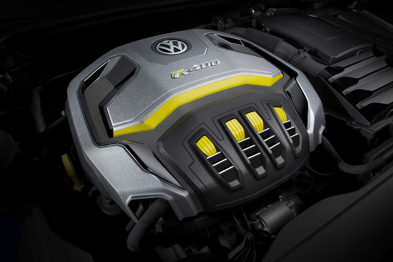 En su comunicado oficial, Volkswagen apunta al potencial como modelo de producción de esta versión. Bajo el capó, el Golf R 400 esconde el cuatro cilindros 2.0 turboalimentado, derivado del que utiliza la marca en el Mundial de Rallyes. Un motor que utilizan desde el el SEAT León al Audi S3 pasando, por supuesto, por el Golf 7 GTI... Salvo que aquí rinde 400 CV. Nada menos que 100 CV más de potencia que el Golf más potente de la gama actual, el Volkswagen Golf R. El par máximo es de 450 Nm disponibles desde 2.400 hasta 6.000 rpm. La fuerza del motor se transmite a las cuatro ruedas mediante el sistema de tracción total 4Motion, y el cambio es un DSG de doble embrague (aunque ojo, en las fotos aparece un cambio manual).