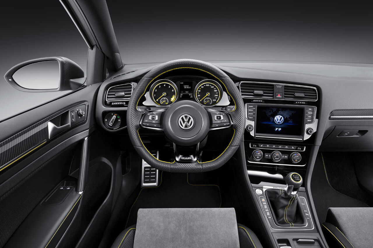 En el habitáculo del Golf R 400, lo primero que destacan son los imponentes asientos deportivos con reposacabezas integrados, en un ambiente general muy de competición, dentro de la sobriedad que caracteriza el diseño interior del Golf. No faltan detalles en fibra de carbono, tapizado en cuero imitando este material (combinado con Alcantara en los asientos), que se utiliza incluso en el volante, y a las costuras de contraste en color amarillo. Sin duda, un «caramelo» que a cualquiera le gustaría probar.