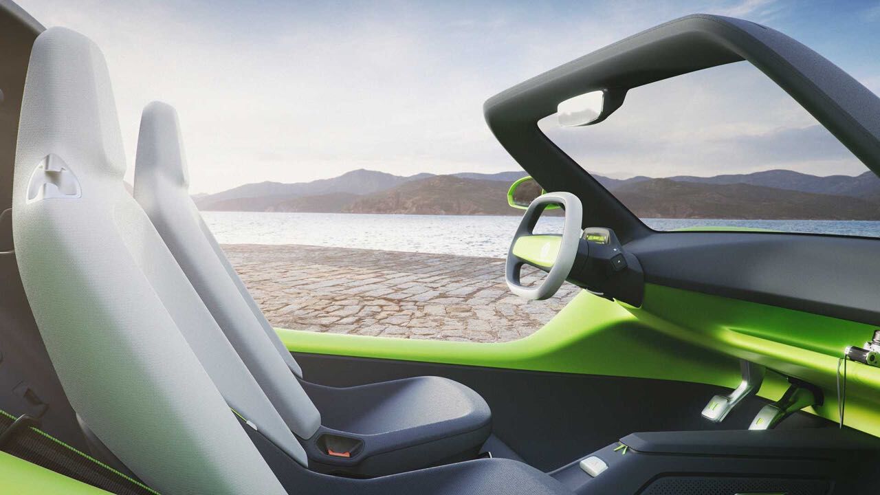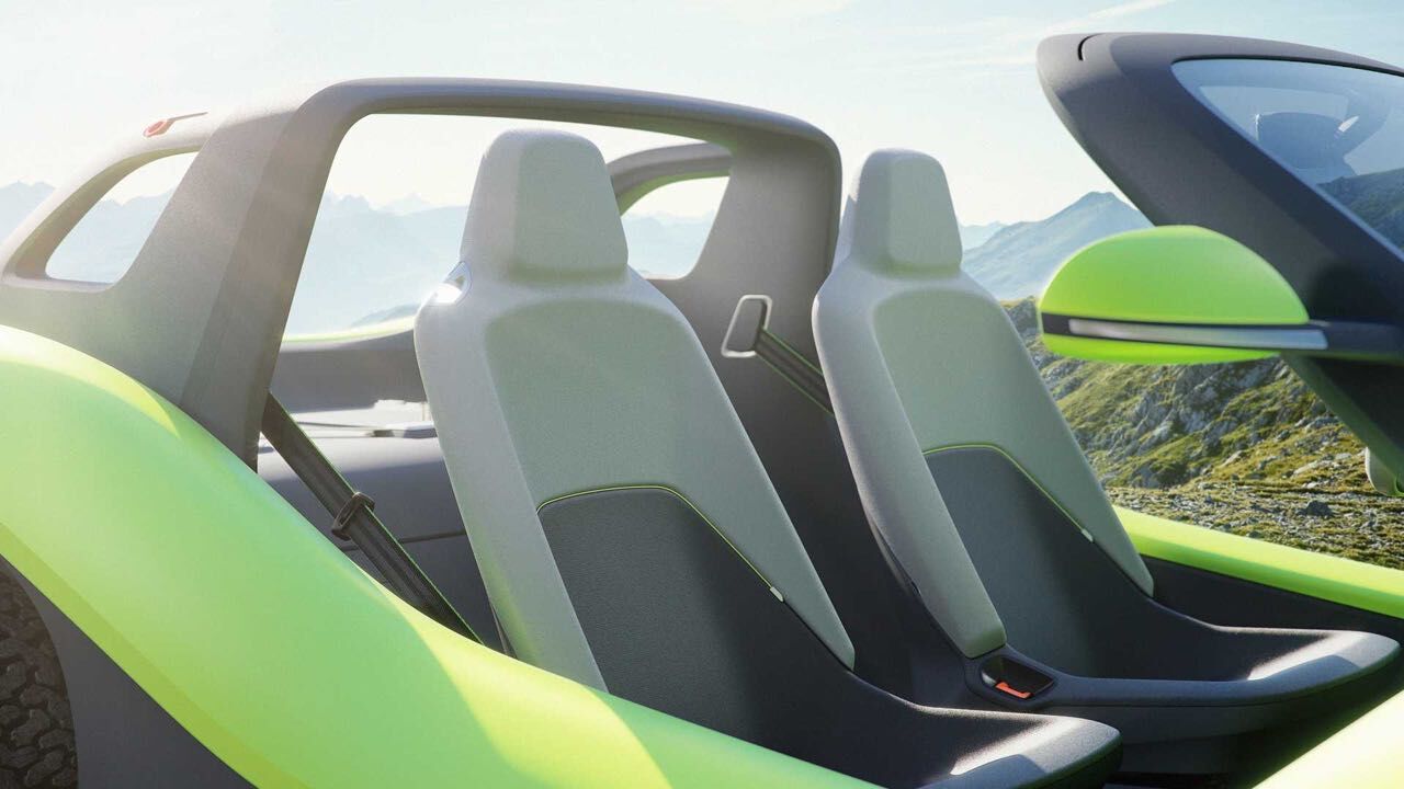 Sin techo fijo ni puertas, de manera deliberada, para poder sentir el viento, el interior se ha realizado por completo con materiales impermeables, algo perfecto para moverse por la playa. Gracias al diseño modular, la carrocería (realizada a partir de una mezcla de alumino, acero y plástico) puede separarse del chasis. De este modo, aunque el prototipo ID Buggy Concept sea un biplaza, podría convertirse en un 2 + 2 plazas sin demasiados problemas.