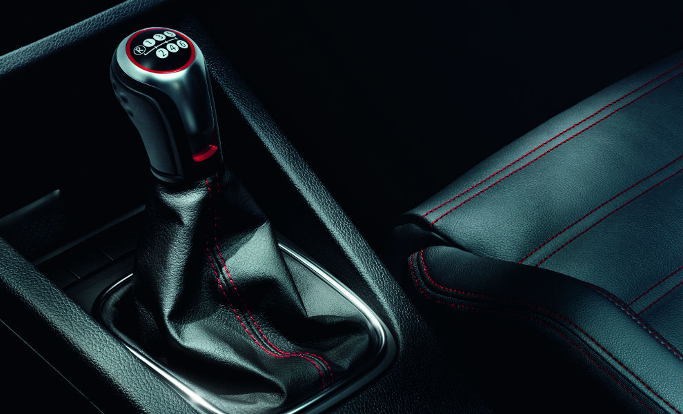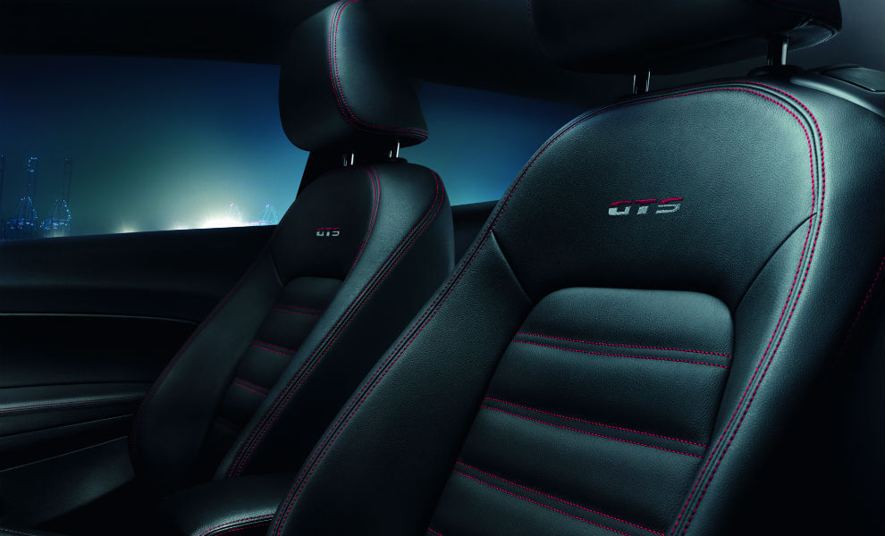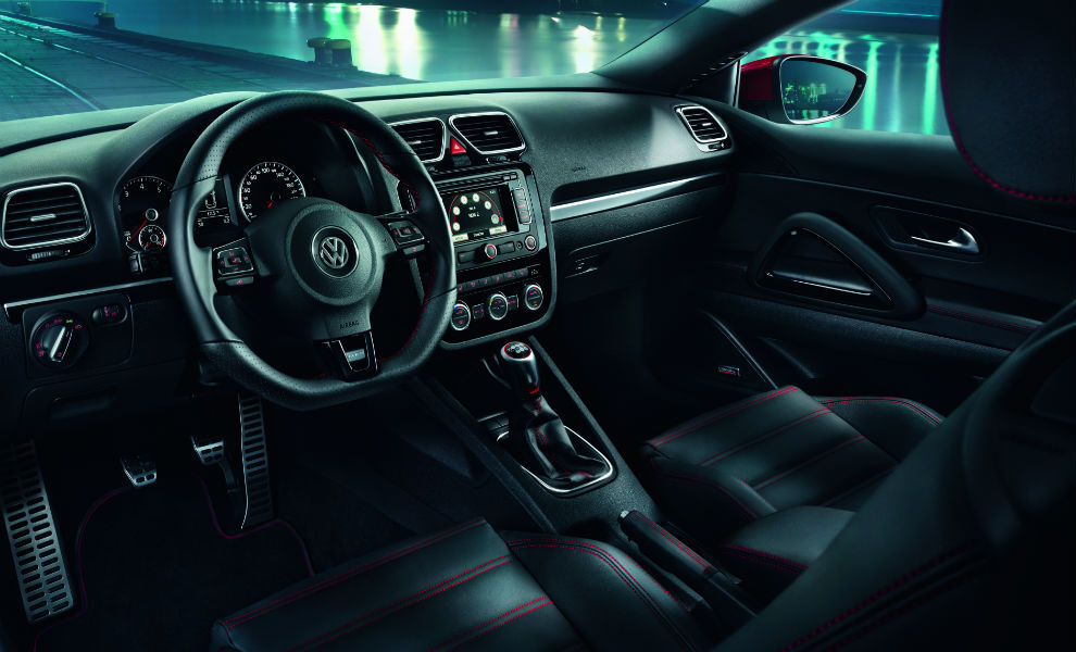 El Scirocco GTS conserva en su interior los colores negro y rojo como protagonistas. Incluye acabados decorativos en negro y detalles lacados en la consola central, y enfatiza su carácter deportivo con unas costuras dobles en rojo, en contraste, tanto en los asientos de cuero como en el volante y la palanca de cambios.