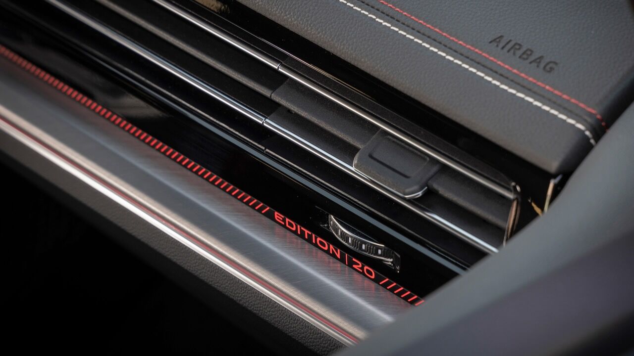 Los umbrales de las puertas van iluminados con el nombre de la edición especial, cuya inscripción se repite en la palanca de cambios. Destaca su tapicería de cuero Savona negro, que en los asientos adopta un patrón de rombos y tiene costuras en contraste en Ceramique (un tono de beige claro). También hay cierta concesión a la deportividad mediante detalles en rojos en el volante, instrumentación e interior de las puertas.
