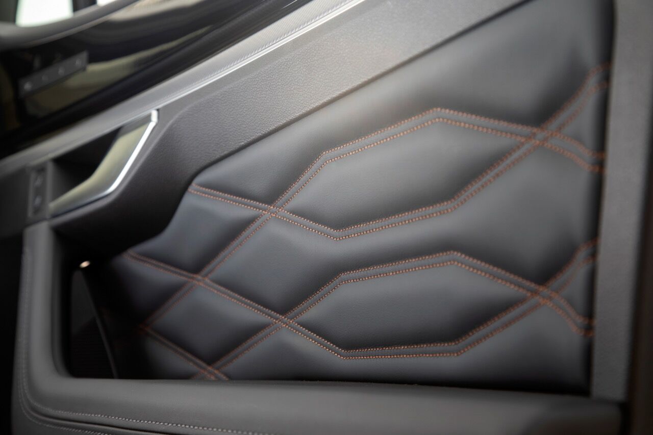El interior del Volkswagen Touareg «One Million» se viste con una elegante tapicería de cuero Puglia coloreada con el extracto de las hojas del olivo y con unas costuras en marrón, haciendo contraste. El cuero llega incluso hasta la llave del SUV, mientras que hay otras molduras en acabado Silver Wave. No falta el nuevo sistema multimedia Innovision Cockpit con esa llamativa pantalla central de 15 pulgadas en la que se aglutinan todas las funciones.