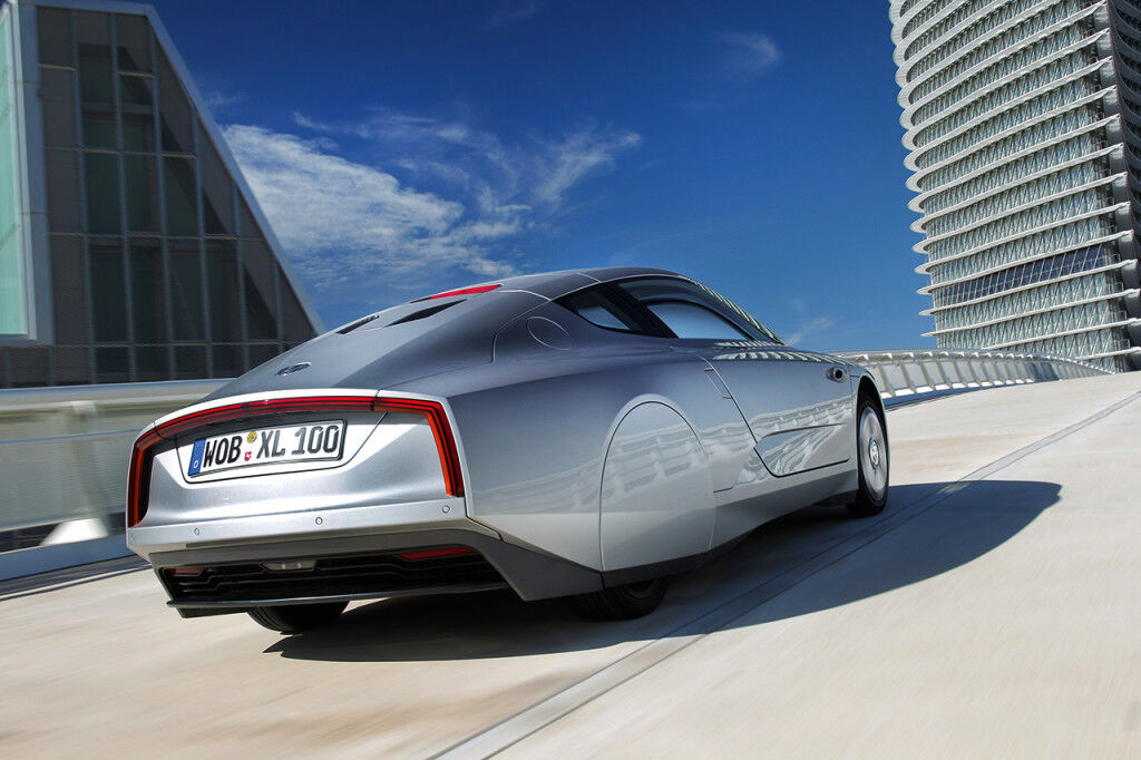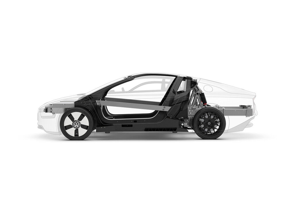 El Volkswagen XL1, el coche que consume menos un litro, es un biplaza con los dos asientos en paralelo ligeramente desplazados (no se optará por los asientos colocados en tándem), que basa su eficiencia en un peso muy reducido, de apenas 795 kilos, y una aerodinámica extraordinaria (mide 1.153 mm de altura y tiene un índice de penetración aerodinámica Cx de 0,189).