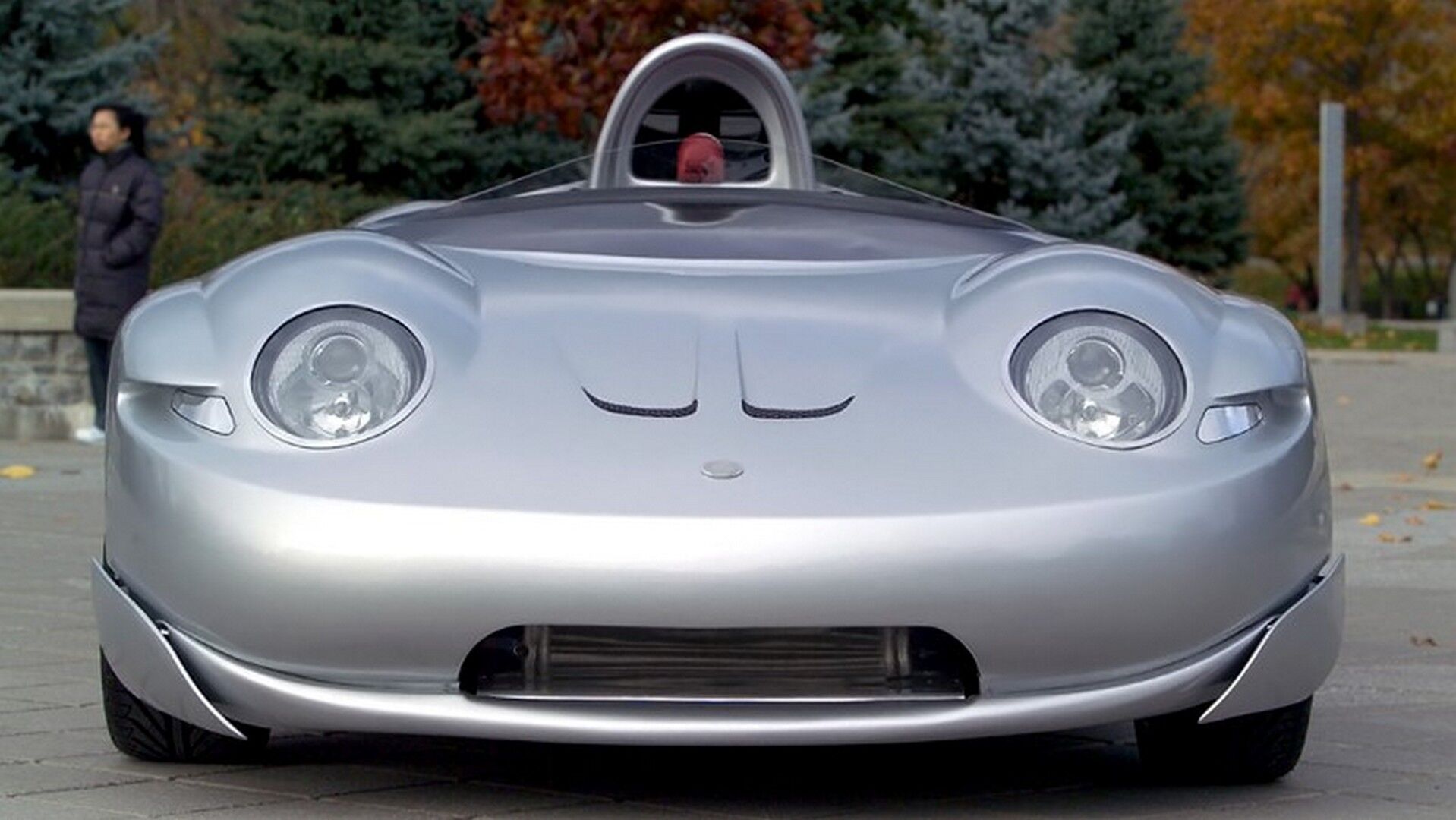 Completamente personalizado y fabricado a mano por la familia Kwok, el armazón fue teñido con una pintura plateada metalizada en combinación con un interior negro. También cuenta con un parabrisas envolvente, medias-puertas que recuerdan al reconocible smart crossblade y una enorme toma de admisión.