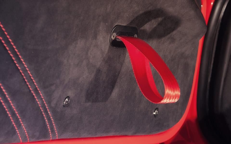 Esta sofisticada montura tiene más detalles propios del mundo de la competición en su interior, con bastantes reminiscencias clásicas, propias de la marca alemana. Tapizado por completo en alcántara, desde el volante, salpicadero, palanca de cambios y asientos disponibles, con cinturones de seguridad de cuatro puntos de anclaje.
