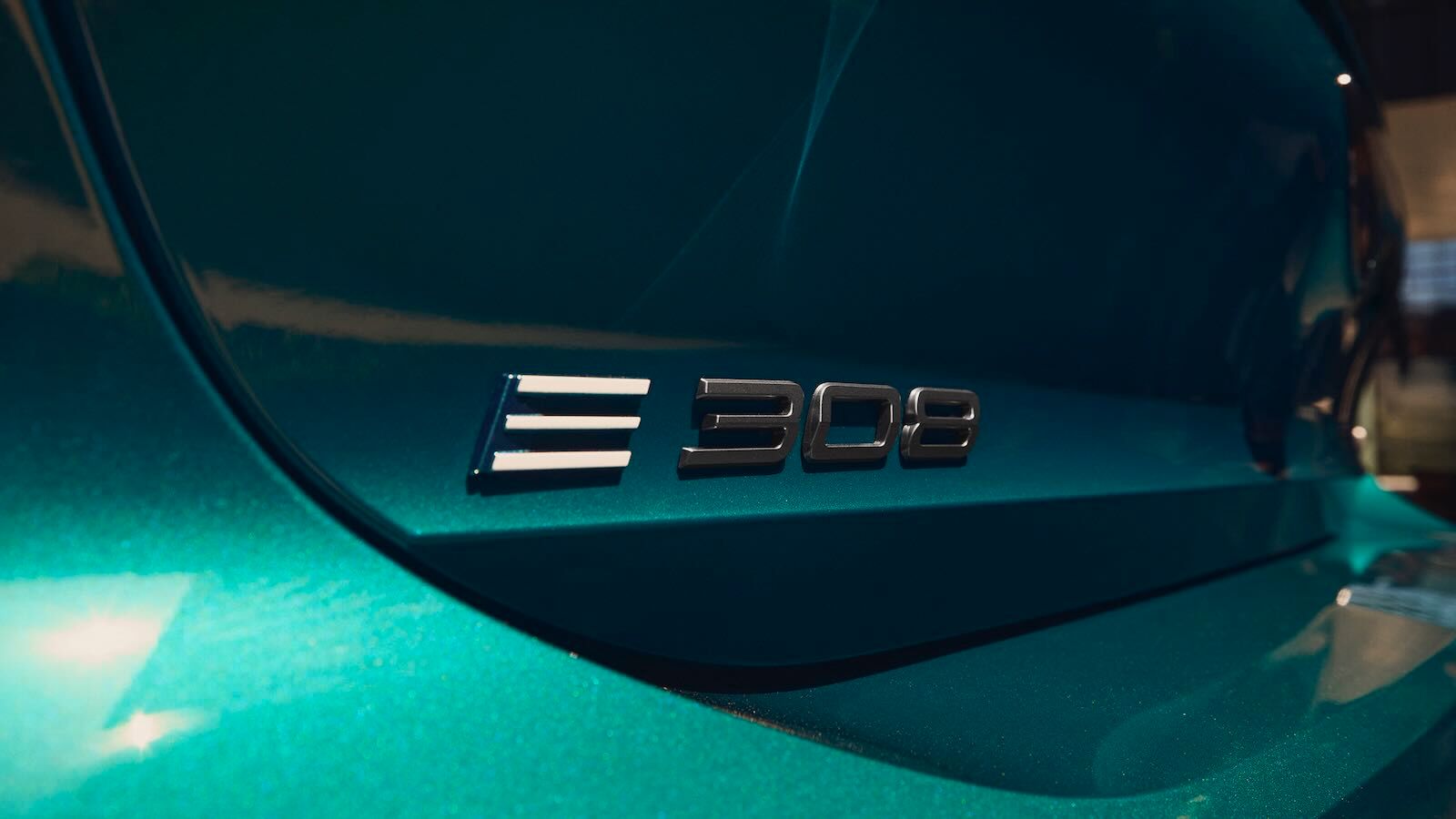 - E-308: Motor de 115 kW (156 CV) y 270 Nm de par, asociado ahora a una Batería de 55.4 kWh útiles que proporciona una autonomía de 450 km (WLTP). Incluye de serie cargador trifásico de 11 kW y admite carga rápida DC de 100 kW (20-80% en 32 min). Estrena novedades como la frenada regenerativa ajustable con tres niveles (controlada por levas), tecnología Plug & Charge (carga y pago automáticos sin necesidad de apps) y V2L (Vehicle to Load) de 3.5 kW para alimentar dispositivos externos. Etiqueta Cero Emisiones.