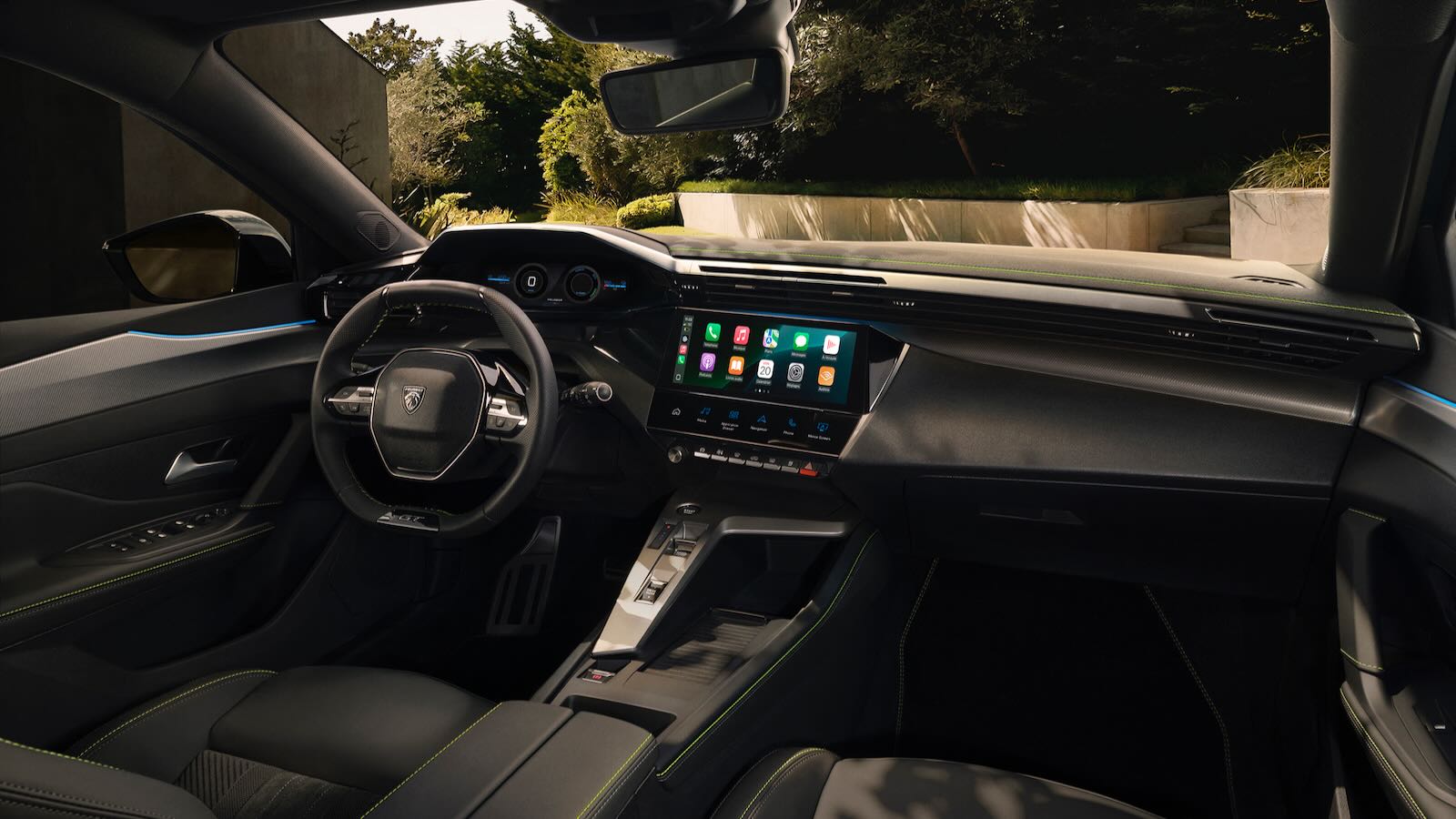 - 308 PHEV: Combina un motor gasolina 1.6L con uno eléctrico para lograr una potencia combinada de 195 CV. Va asociado a una transmisión automática e-DCS7 de 7 velocidades. Cuenta con una batería de 17.2 kWh que ofrece 85 km de autonomía eléctrica (WLTP). Recarga en 2h05 con cargador de 7.4 kW. Etiqueta Cero Emisiones.
