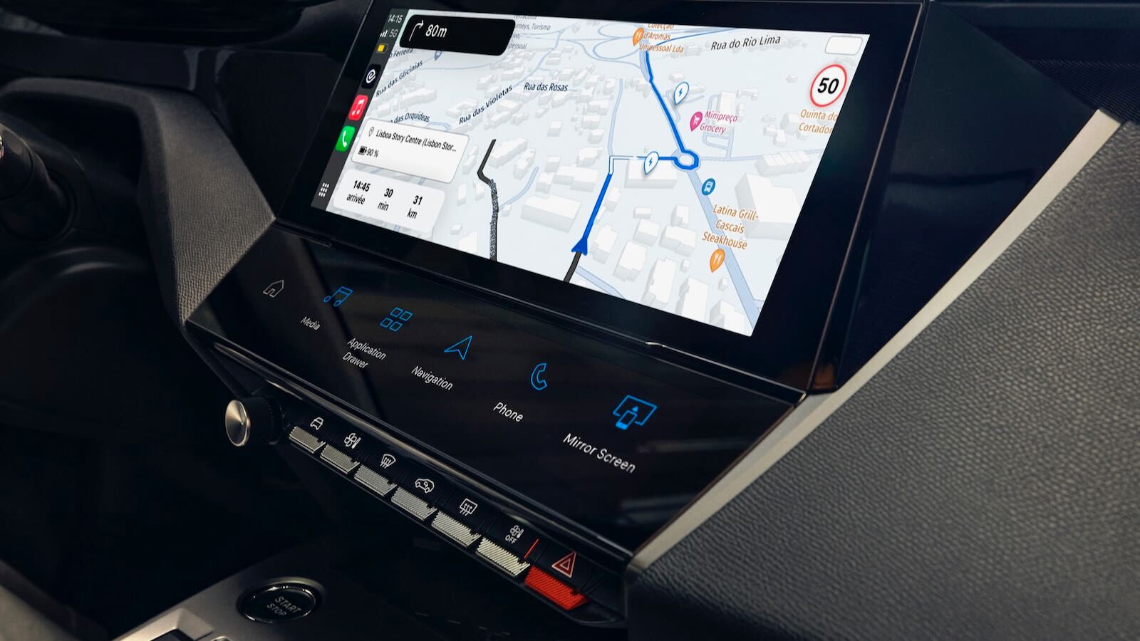 Por su parte, el habitáculo sigue orbitando en torno al Peugeot i-Cockpit, con volante compacto y la instrumentación digital de serie. El salpicadero presenta una disposición más limpia y despejada, dominada por una pantalla táctil central de 10 pulgadas. La gran novedad son los i-Toggles: cinco controles táctiles físicos y personalizables ubicados bajo la pantalla que permiten configurar accesos directos a funciones clave como la climatización, navegación o la agenda de contactos, minimizando las distracciones al conducir.