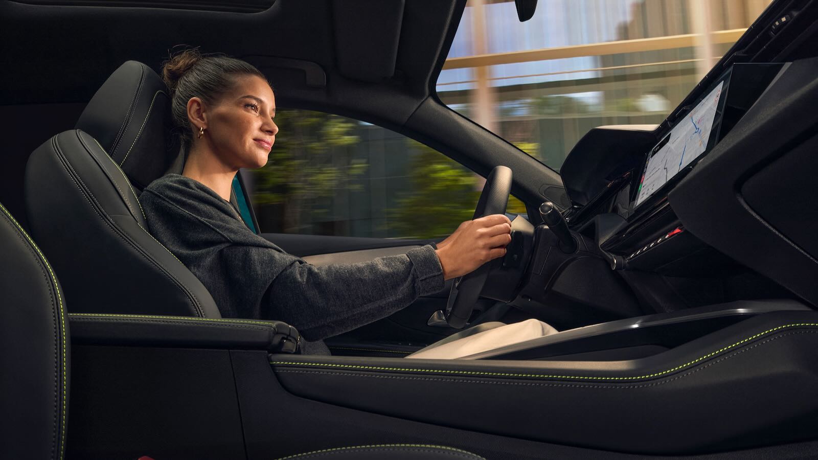 La percepción de calidad da un salto con el uso de materiales más nobles. Los acabados superiores incorporan aluminio en salpicadero y puertas, así como tapicerías de Alcantara. El ambiente se personaliza con una iluminación ambiental en ocho colores que se extiende desde el salpicadero hasta los paneles de las puertas.