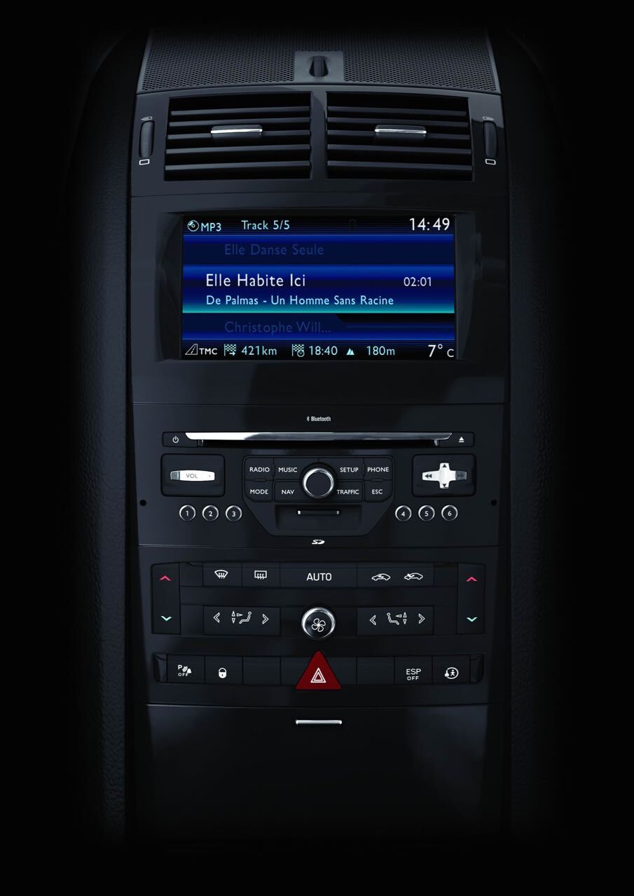 El 407 lleva un buen equipamiento de serie. Todas las versiones llevan sistema de manos libres Bluetooth, navegador con pantalla a color, control de estabilidad, fijaciones Isofix en el asiento del copiloto para anclar una silla para niños y mandos de la radio en el volante.