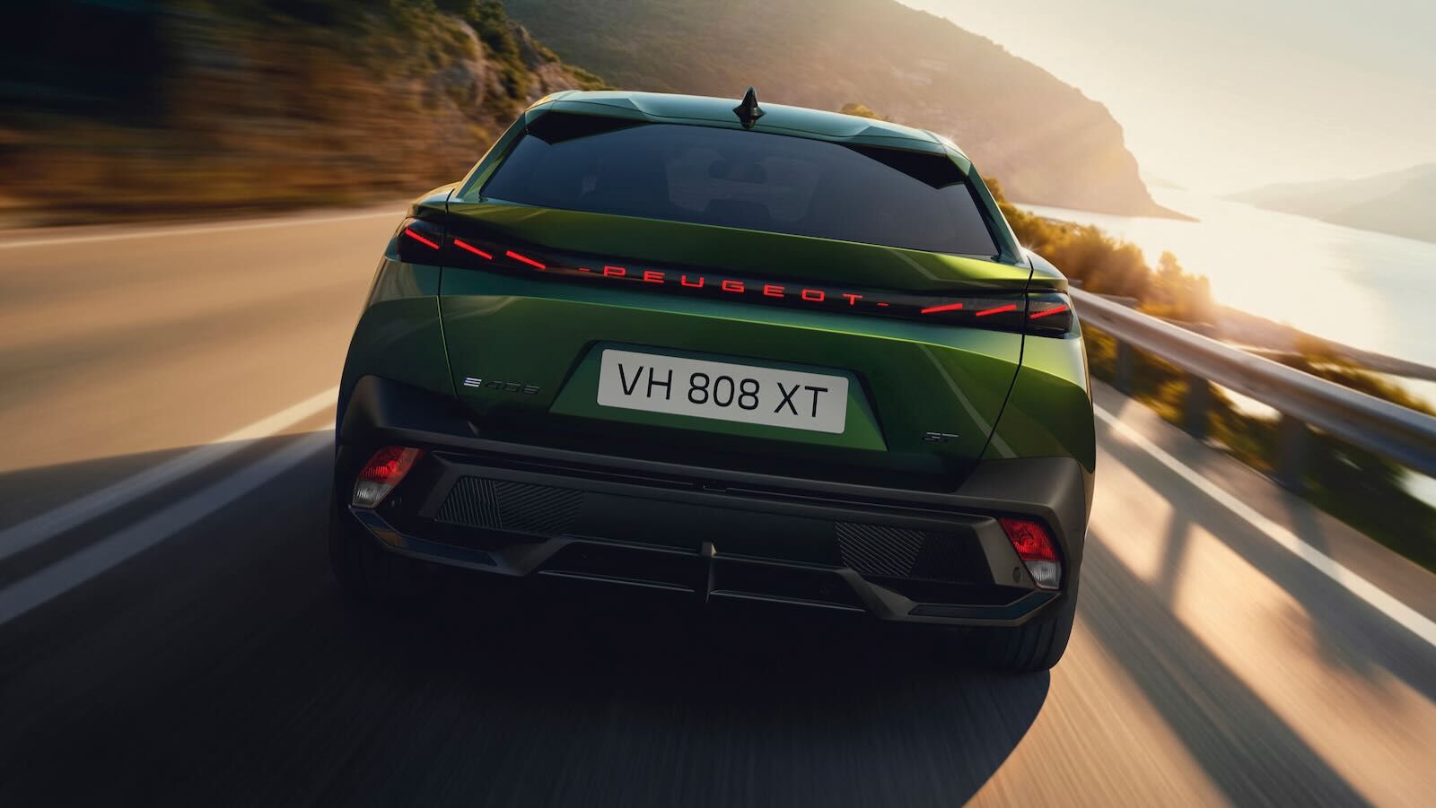 De perfil solo cambian las llantas, ahora de 17, 19 o 20 pulgadas según versión, y se añade el nuevo color Flare Green, una pintura camaleónica que vira hacia tonos amarillentos según la luz. En la zaga estrena pilotos con tres garras y, sobre todo, la inscripción PEUGEOT iluminada, siendo el primer modelo de la marca en incorporarla, combinada con el logotipo frontal también retroiluminado en los acabados superiores.