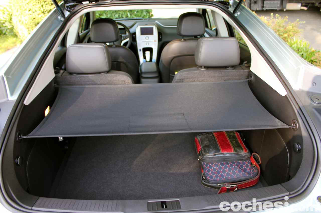 Como las batería van situadas debajo del cofre del maletero (y a lo largo de toda la parte central del vehículo) la zona de carga está bastante elevada. Con todo, la capacidad oficial del maletero es de 310 litros, suficiente para las cuatro personas que caben. Si se prescinde de la fila trasera, alcanza los 1.005 litros.