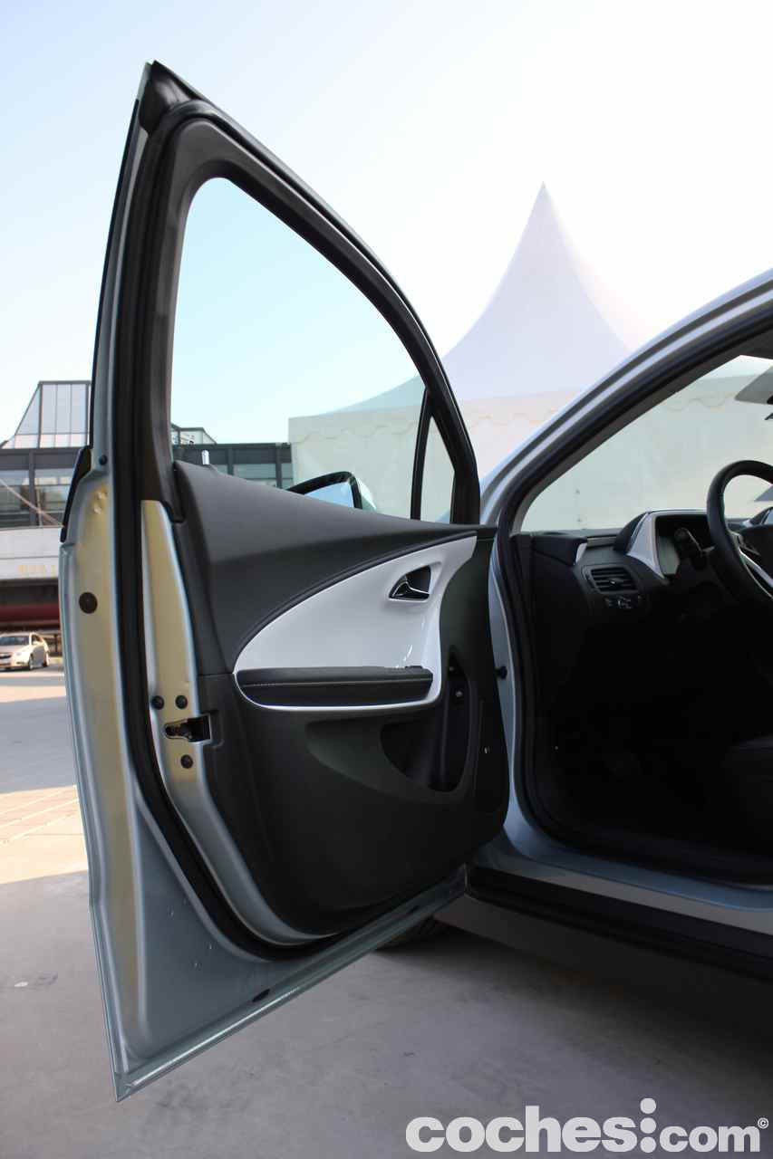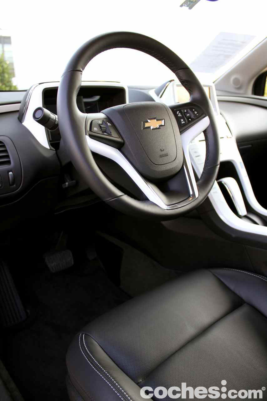 El moderno exterior tiene su reflejo en el interior. Todos los Volt disponibles tenían el mayor acabado de gama, lo que supone un acabado bicolor, con parte del salpicadero y la consola central en color blanco. Los asientos, de cuero reproducen el mismo juego de colores blanco y negro. Es de esos coches que llama la atención.