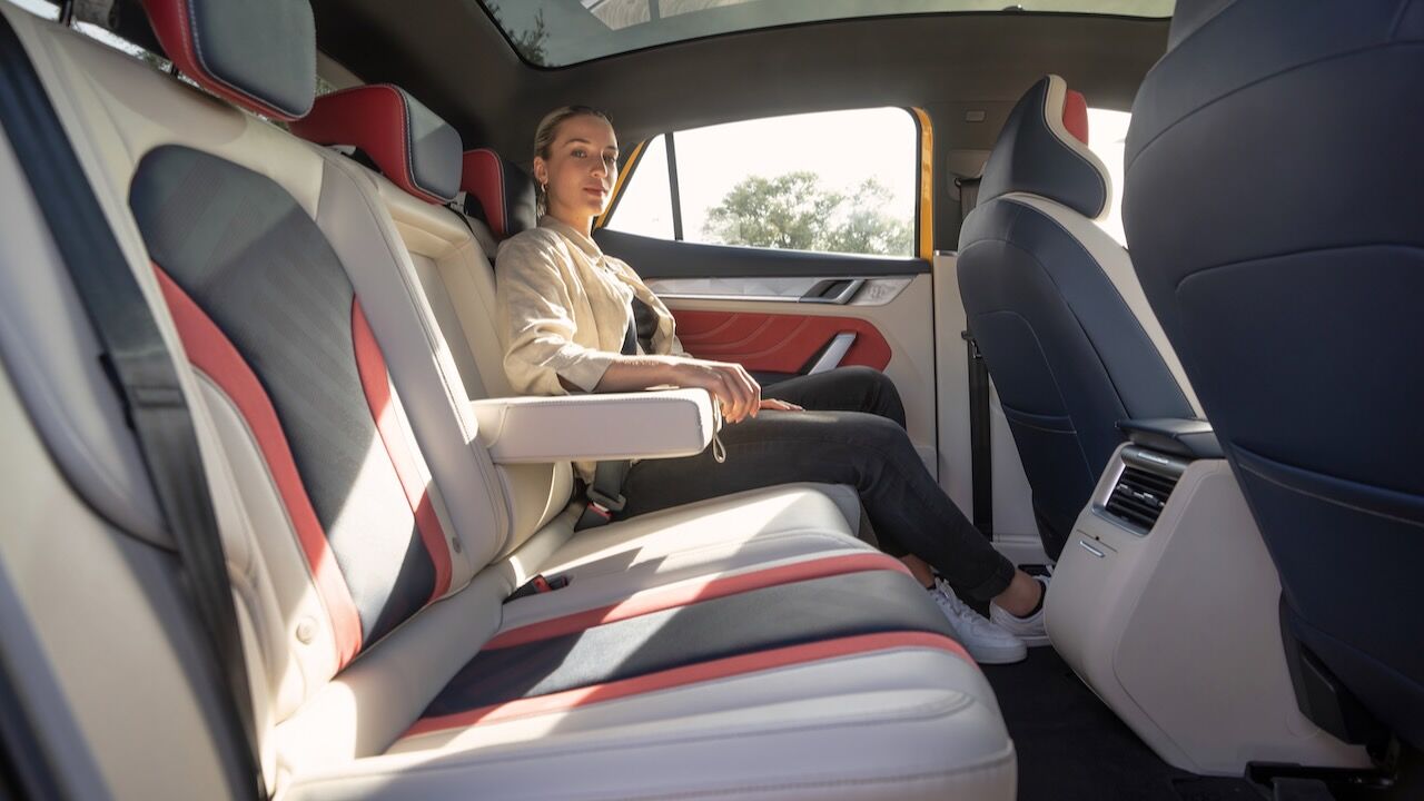 La sensación de espacio en el interior viene incrementada por el techo solar, que el más grande del segmento con 2,1 metros cuadrados. Aunque no es solamente que parezca amplio, es que el Aiways U6 realmente lo es. La segunda fila de asientos tiene hueco de sobra para dos adultos debido a unas cotas notables de espacio para piernas y para cabeza. Si bien es cierto que la plaza central es más estrecha y carece de forma, pero puede ser usada de forma esporádica. También mencionar que tiene el suelo plano, no hay túnel de transmisión que pueda molestar.