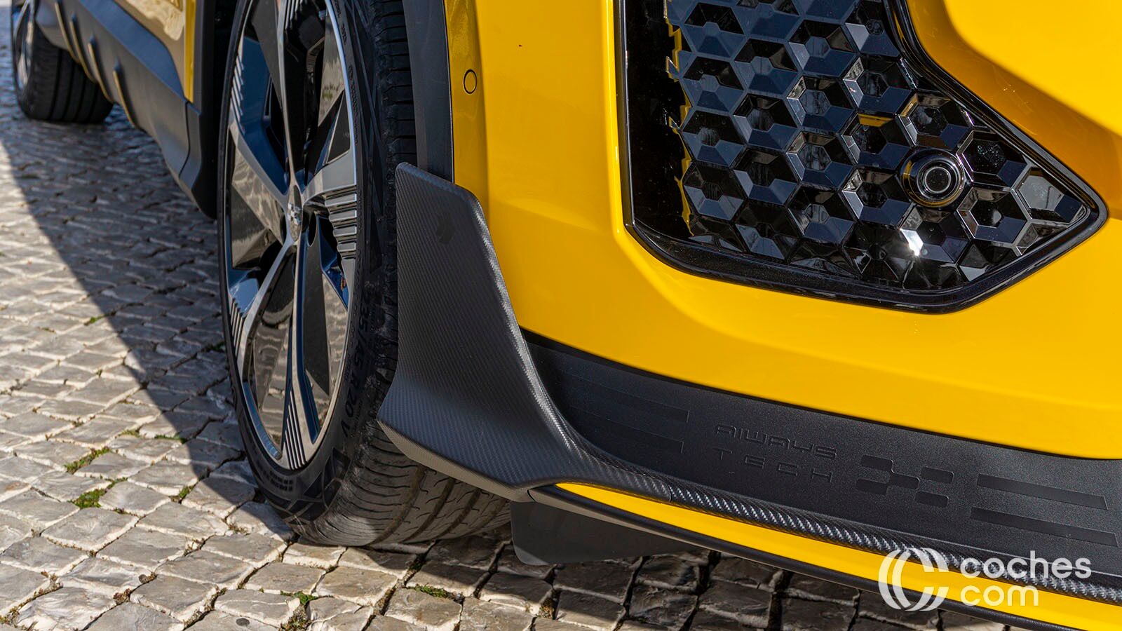 En el frontal vemos mucha horizontalidad a través de una especie de morro de tiburón bien marcado y unas ópticas finas a la par que estilizadas. Las luces diurnas tienen una disposición vertical y sorprende ver un paragolpes ensanchado y que presenta unos apéndices aerodinámicos que le ayudan a mejorar su rendimiento. Las puertas tienen los tiradores enrasados en la carrocería y una moldura en contraste en la parte inferior.