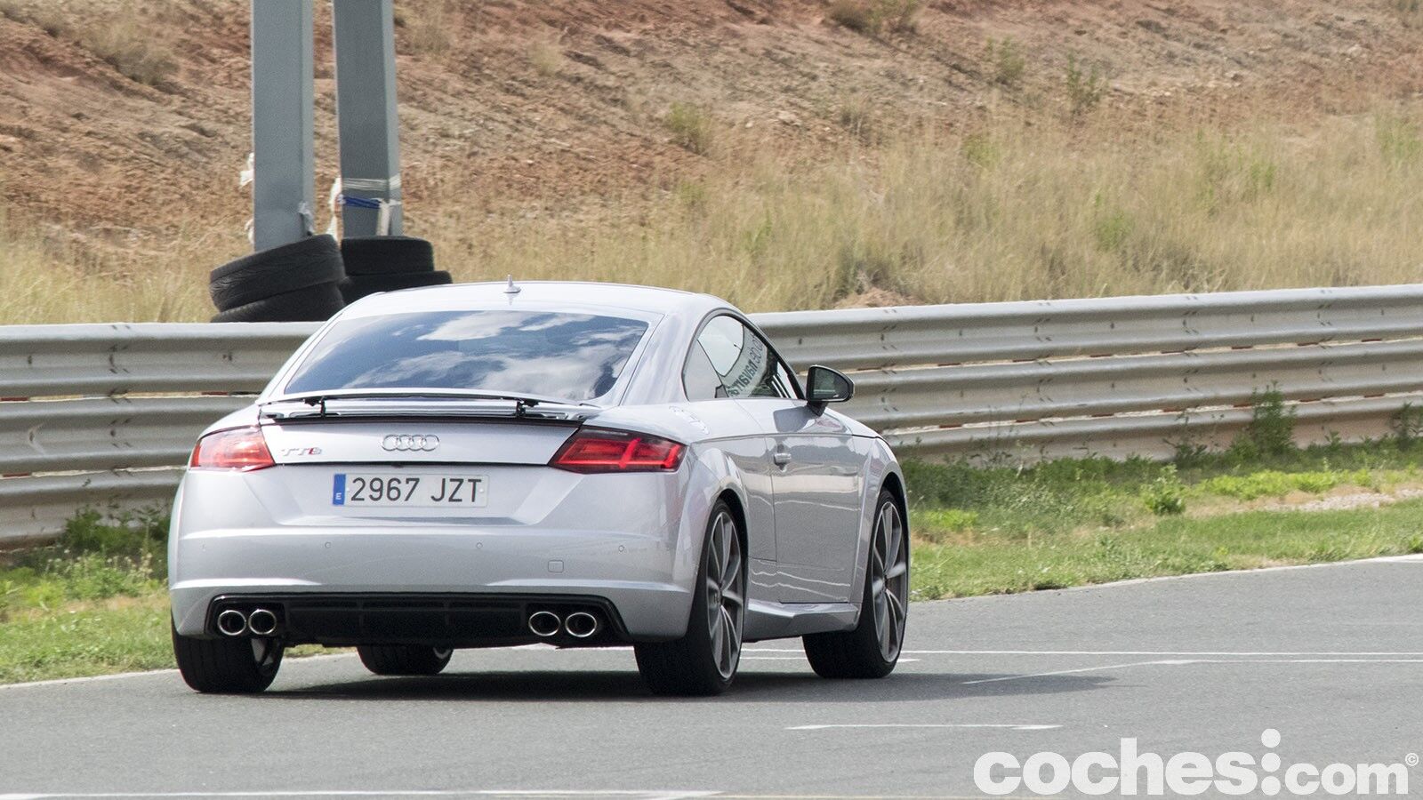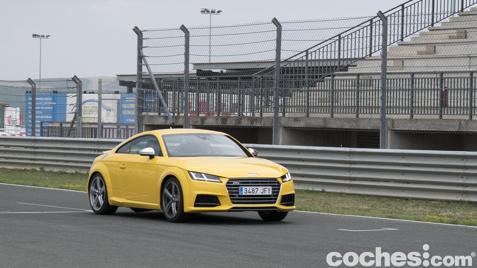 Para la última tanda tenía claro que quería probar uno de los pequeños. Había tenido el Audi TTS fuera del circuito y guardaba muy buenos recuerdos de él. En cuanto llega nuestro turno prácticamente corro hacía él. Con sus cuatro cilindros y 310 CV se que me va a costar coger al resto en recta, pero también cuento con su precisión en curva y su ligereza. Con solo una vuelta noto que es el más sencillo de conducir, es muy noble y no te pone en apuros.