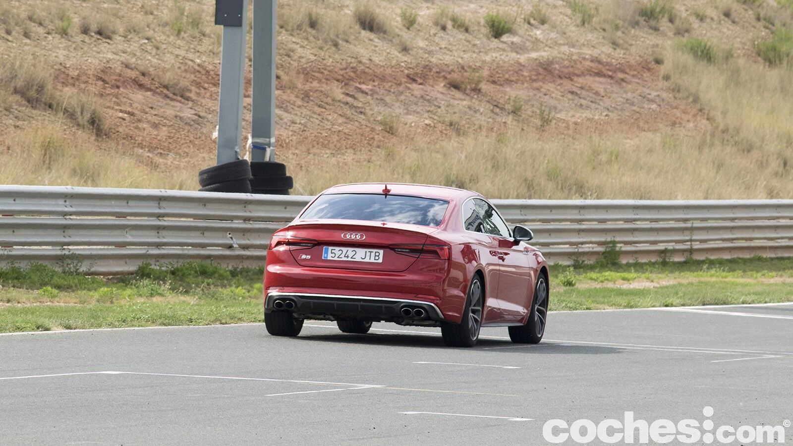 En la primera vuelta cometo algunos errores menores de los que aprendo rápidamente. El S5 hay que conducirlo con algo de calma, buscando el punto óptimo de frenada y aguardando hasta haber salido de la curva para pisar el acelerador a fondo. En situaciones normales tenemos el 40% del par pasando a las ruedas delanteras y el 60% restante a las traseras, pero eso se va modificando en función de cada situación. Las levas en el volante del cambio tiptronic de ocho velocidades nos facilitan la vida.