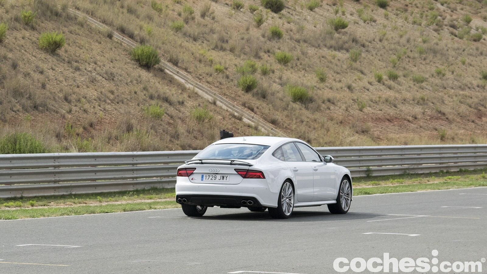 Como decíamos, poco a poco pudimos ir viendo las reacciones de los distintos integrantes de la gama S. Solo con el reconocimiento de la primera mitad del circuito con el Audi S7 Sportback me sirve para darme cuenta de que el peso le penaliza en este trazado. Sus 450 CV hacen que acelere como un demonio y su aplomo en curvas rápidas es envidiable. También es el que más sufre en los cambios de apoyo y en los virajes lentos, pues aparecen ciertos balanceos en la carrocería.