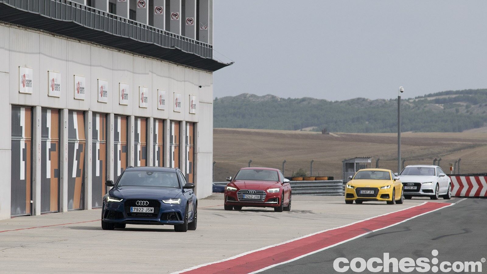 Y, ¿qué mejor lugar que un circuito para probar un puñado de deportivos? Nos desplazamos hasta el Circuito de los Arcos (Navarra) para ponernos al volante de la gama S de Audi. Se trata de un trazado bastante completo y exigente, que intercala curvas rápidas con otras zonas más técnicas y lentas. Sabemos de antemano que los frenos también sufrirán debido a las intensas frenadas, algunas de ellas en apoyo.