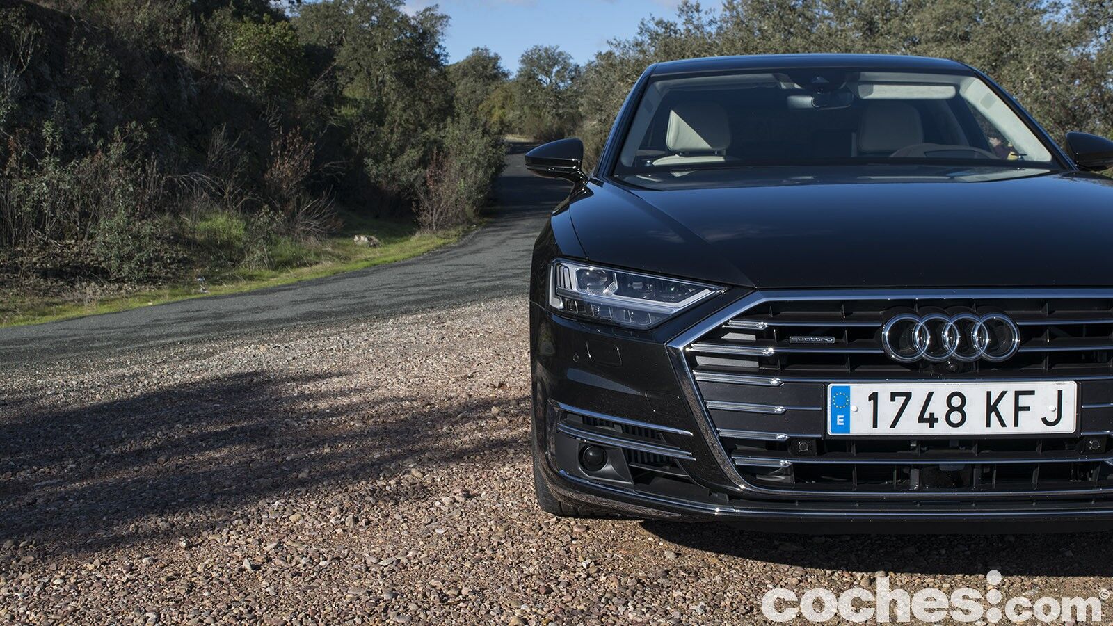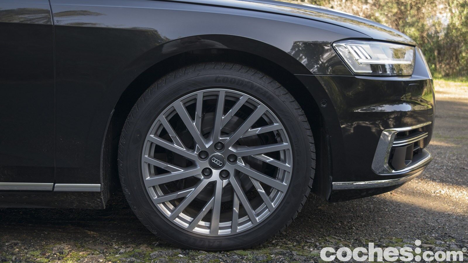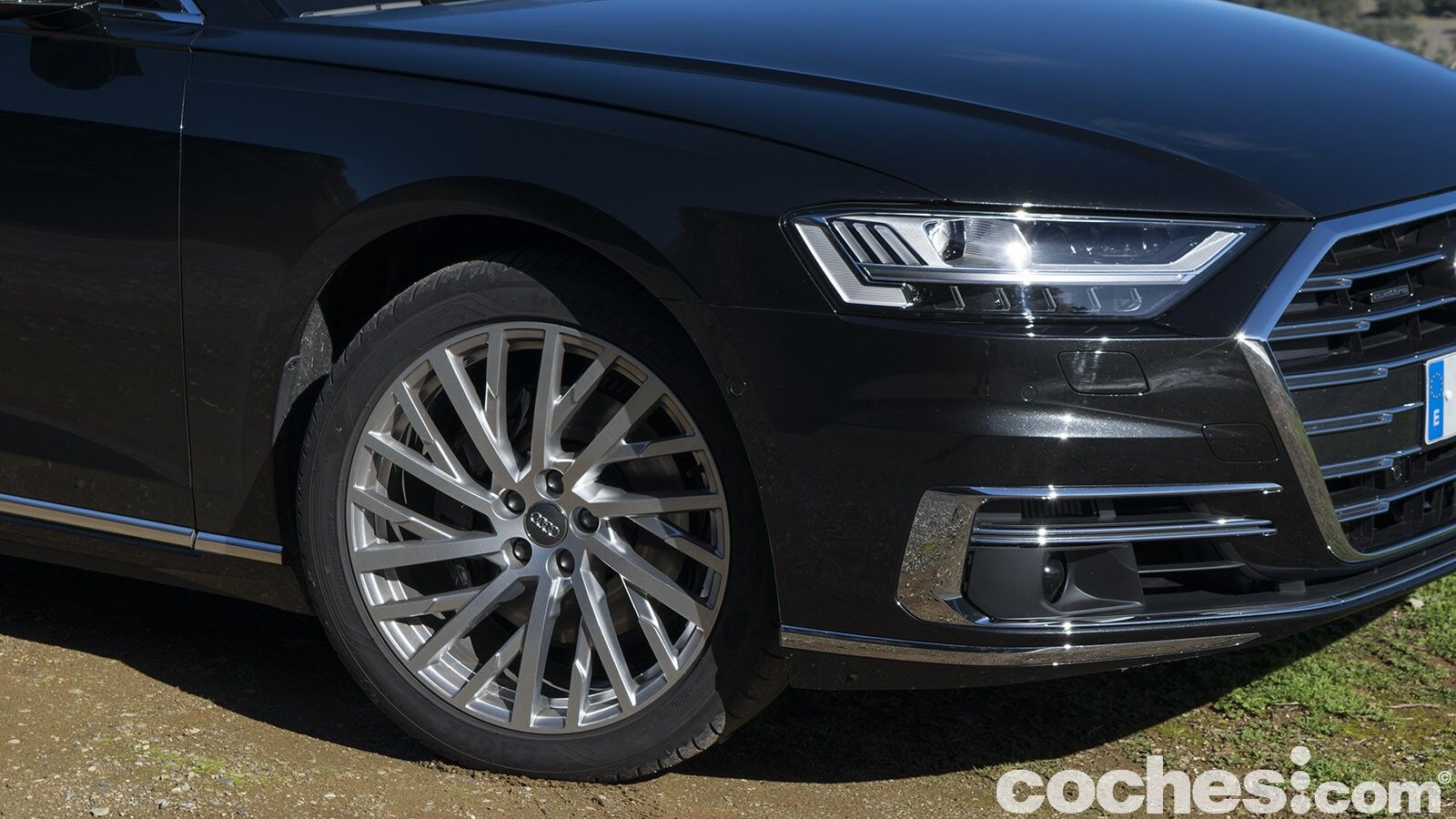 Uno de los elementos clave para conseguir esto es la suspensión neumática adaptativa, montada de serie en todos los A8. Destaca su capacidad de filtrar las irregularidades del terreno, así como la de reducir prácticamente a cero cualquier balanceo. Llama la atención como en una frenada fuerte el morro no se inclina. Próximamente se podrá equipar el sistema Active Suspension, que utiliza la cámara leer la carretera y prepararse para absorber el bache. También es capaz de inclinar la carrocería en caso de posible accidente.