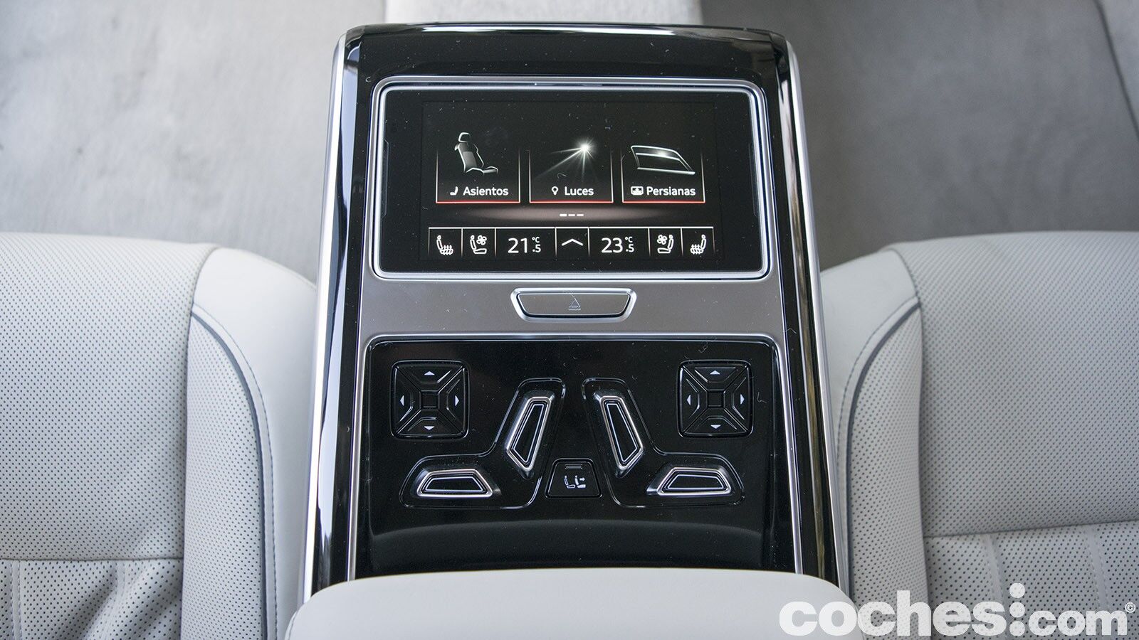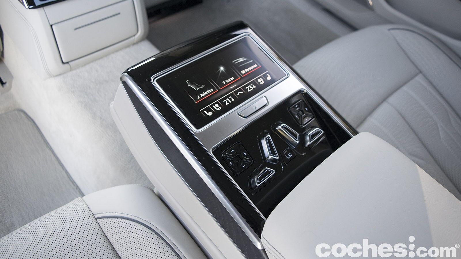Aunque si te compras un Audi A8 puede que vayas a pasar la mayor parte del tiempo sentado en las plazas traseras. Probamos la versión de batalla extendida y comprobamos que allí no habrá problemas de espacio. Aunque tengas cinco plazas homologadas, lo cierto es que está pensado para que viajen cuatro personas. De hecho, hay una consola central en el reposabrazos que nos permitirá multitud de opciones.