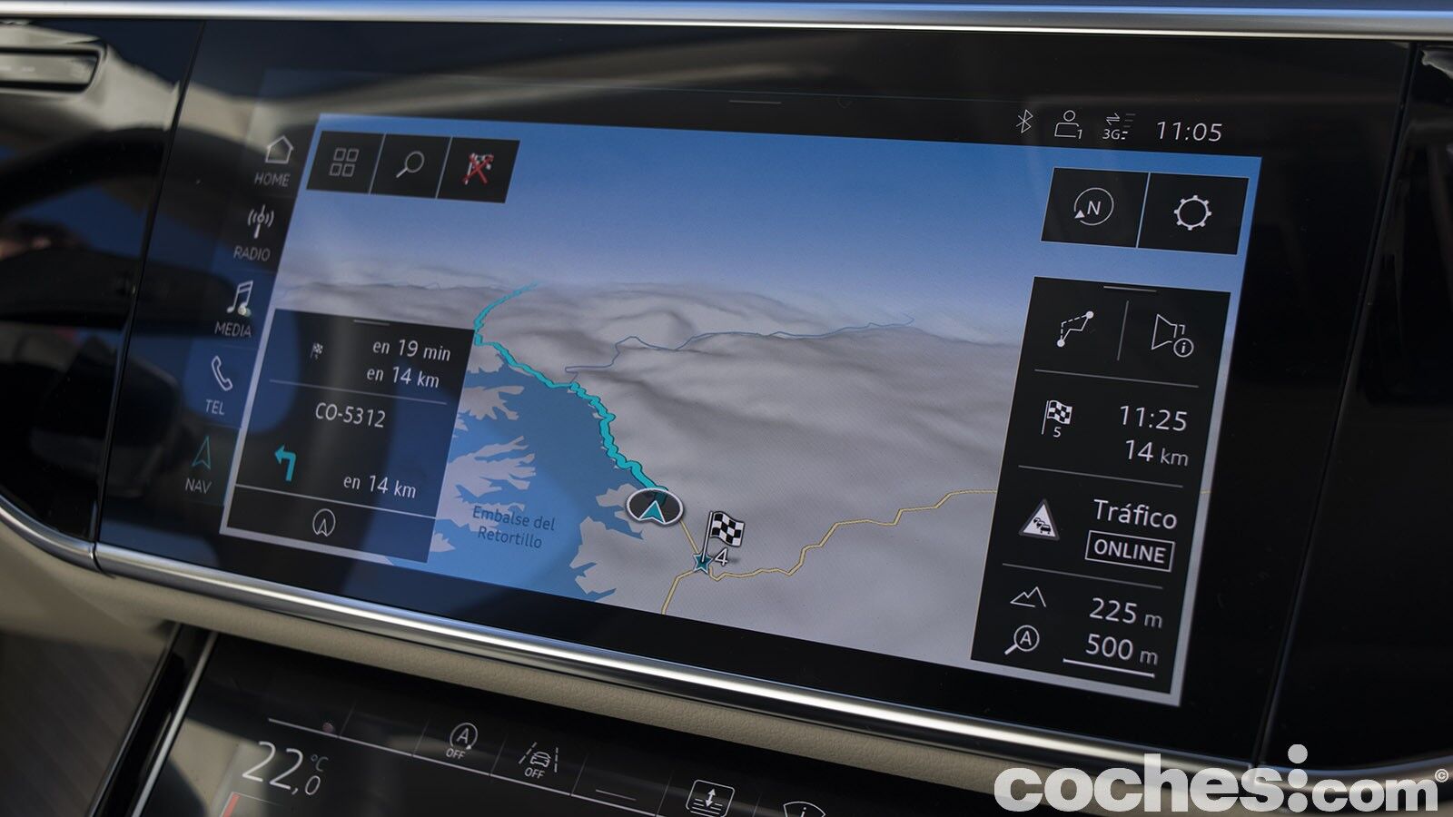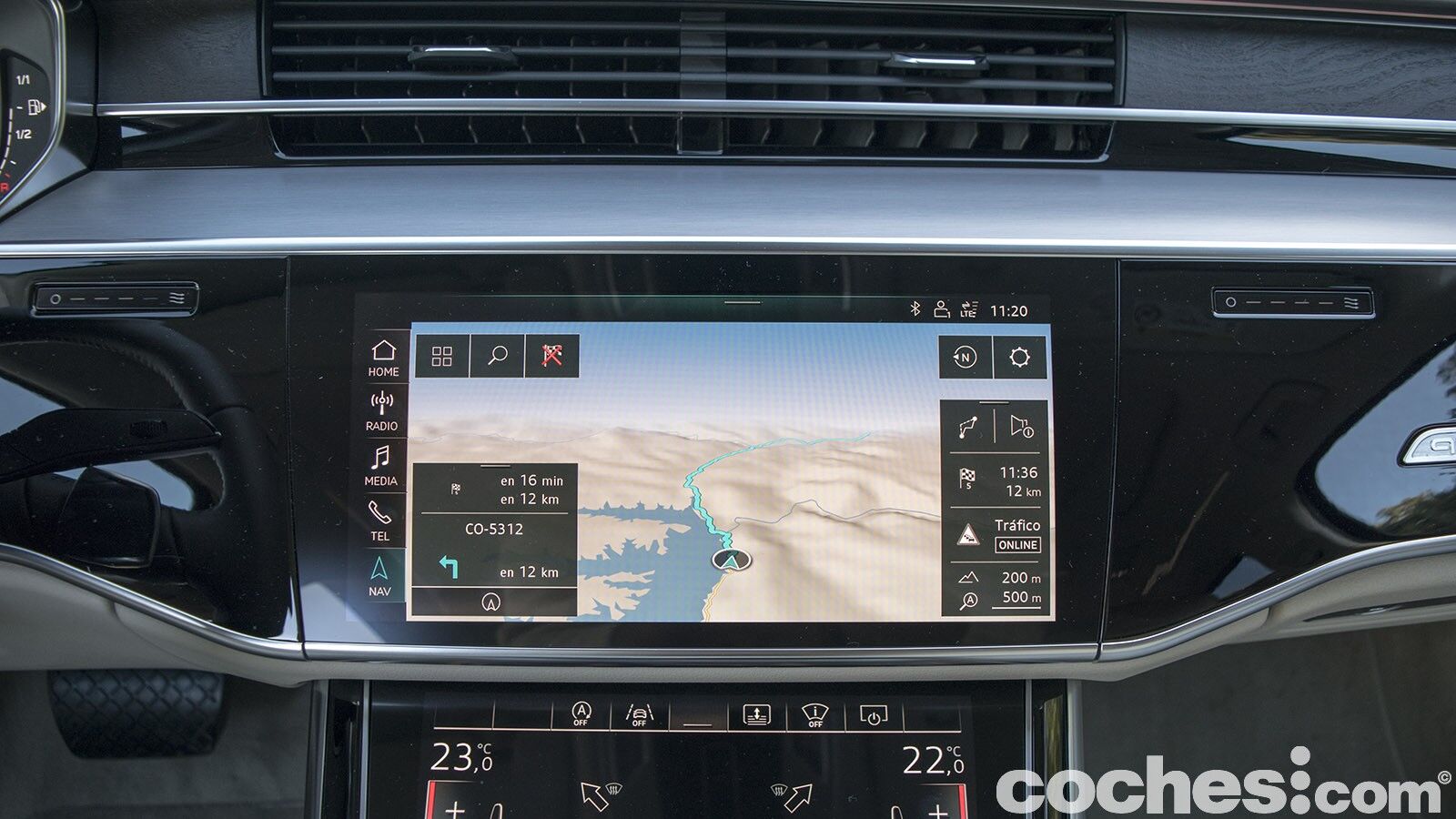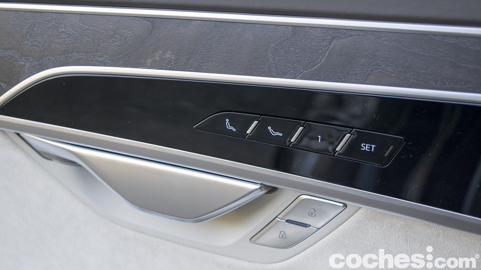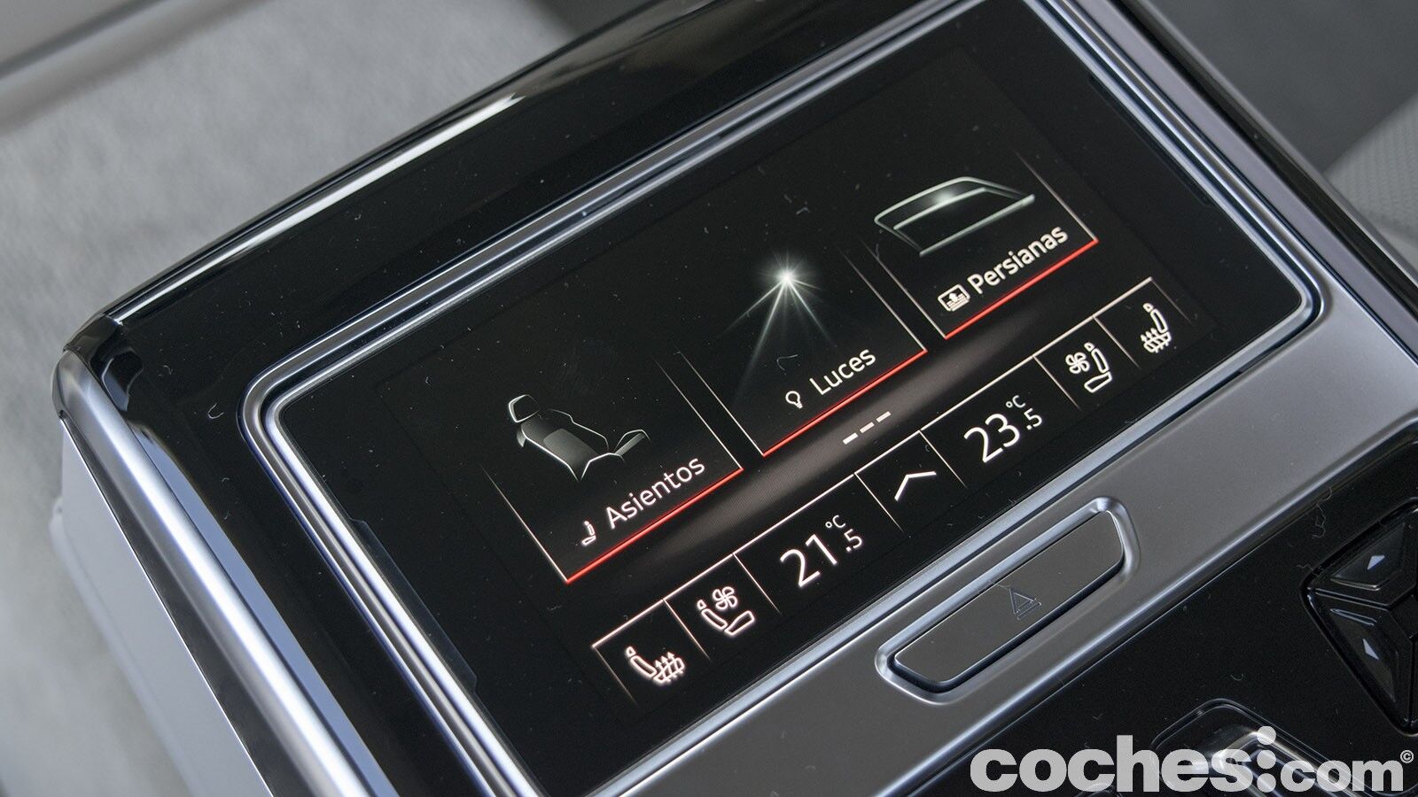 Lo que sí que se aprecia desde los cuatro costados es la calidad de fabricación del A8. Si en Audi este aspecto ya cumple con nota, en el buque insignia busca la matrícula de honor haciendo uso de materiales exquisitos. Casi todas las superficies van cubiertas de cuero, Alcántara, aluminio o madera; todos de un tacto más que agradable. El único ‘pero’ que se le podría sacar es el ‘cristal negro brillante’ que rodea las pantallas y se extiende en el salpicadero, algo mejor que otros Piano Black, pero igual de ensuciable.