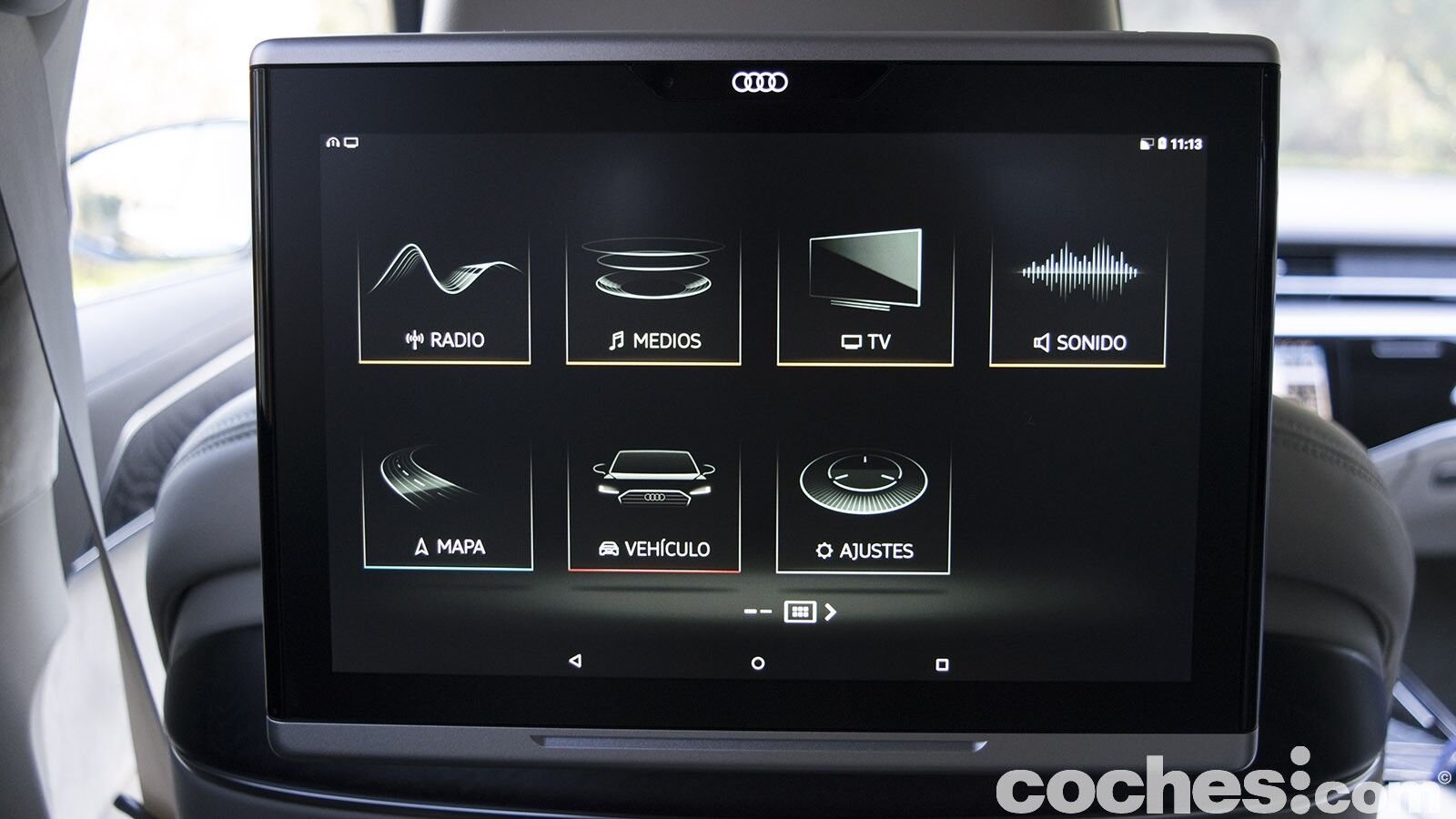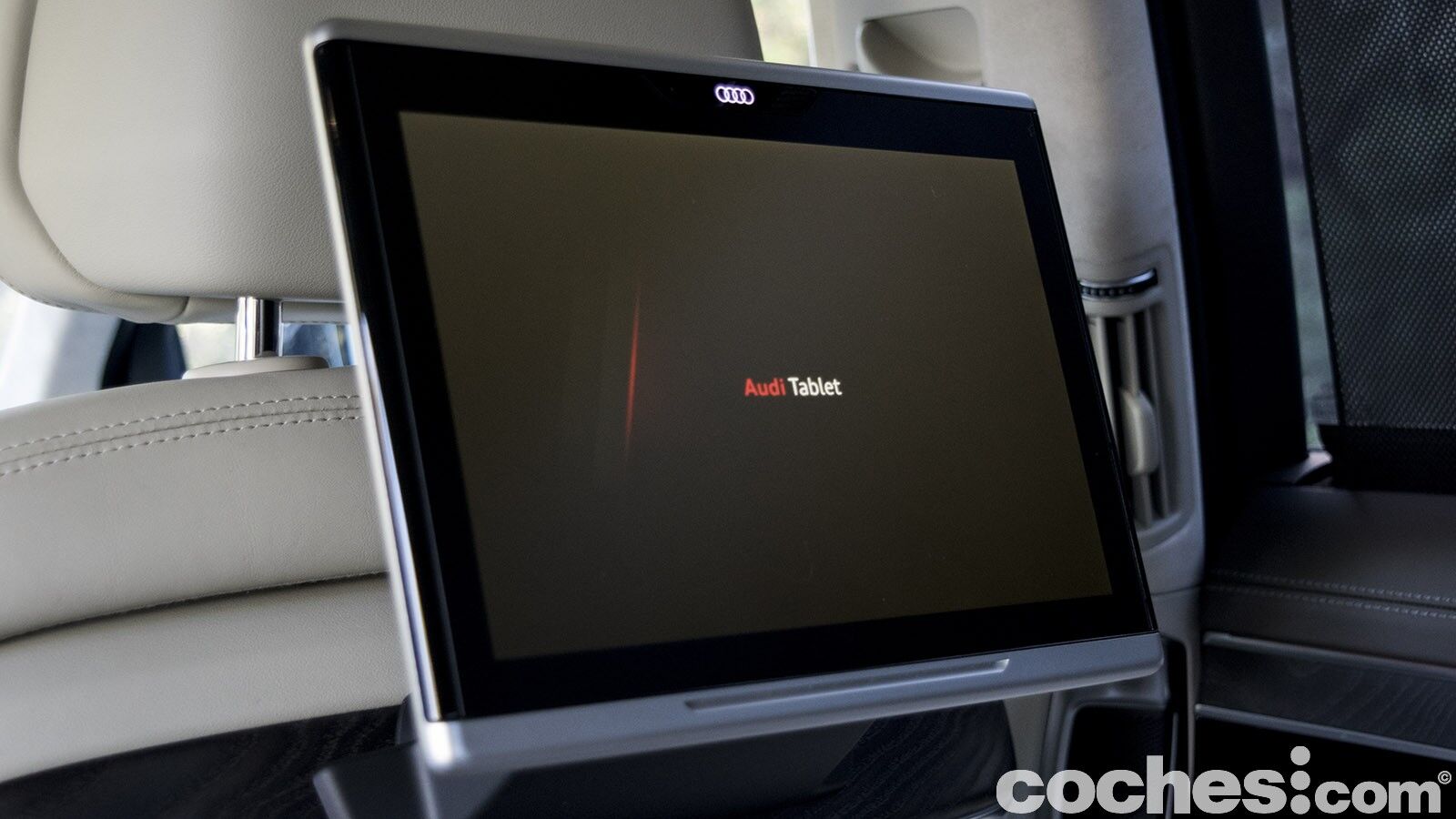 Opcionalmente también se pueden añadir dos tablets de 10,1 pulgadas fijadas en los reposacabezas delanteros. Aunque cuentan con un sistema operativo Android, su diseño es muy Audi y van en aluminio a juego con el coche. Al tener conexión a internet permiten muchas opciones. Como se aprecia en el vídeo, nosotros pudimos viajar navegando por nuestra web favorita, viendo la tele o siguiendo nuestro recorrido. Las tablet también son extraíbles, pudiendo ser usadas por el copiloto.
