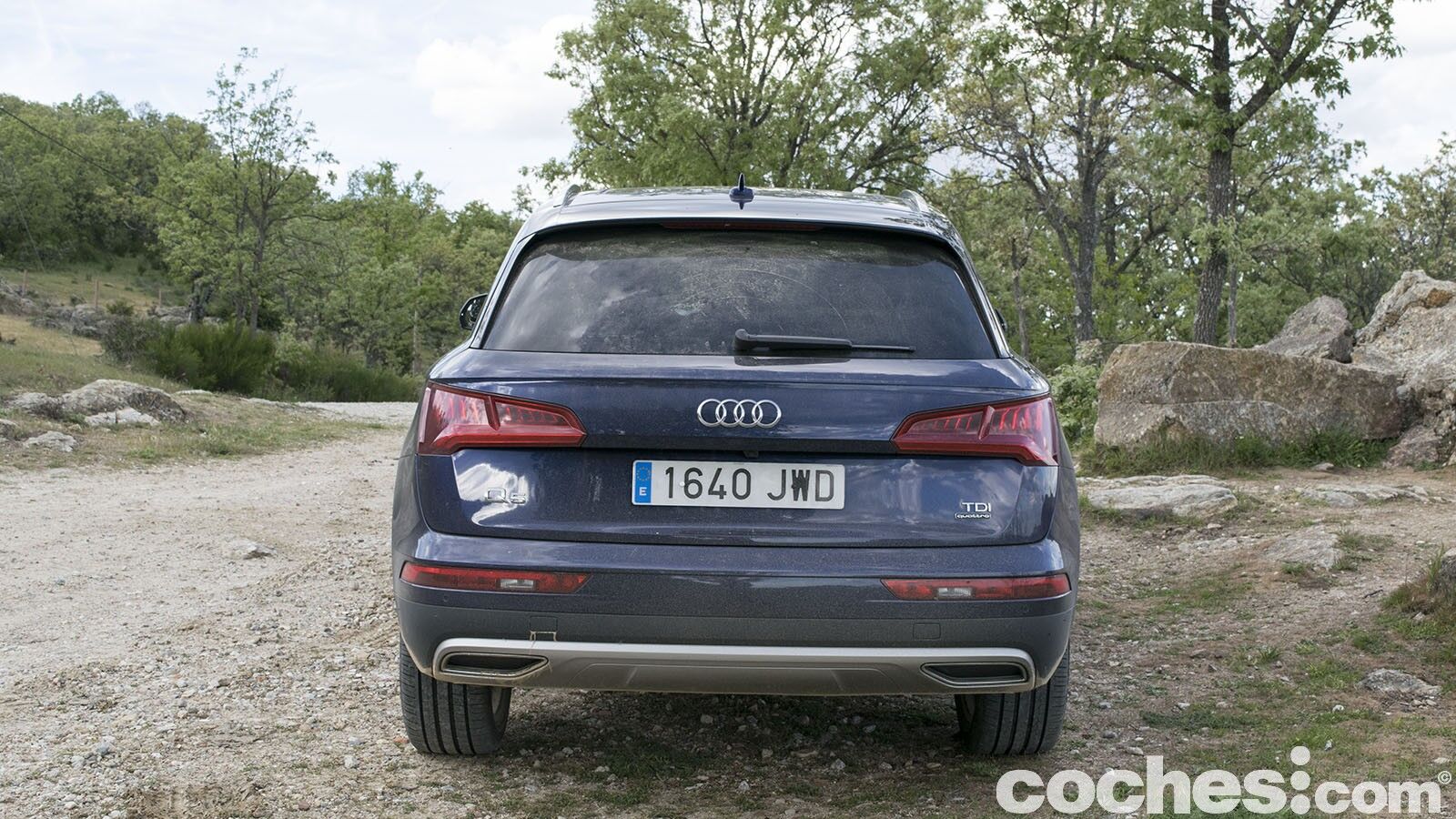 De perfil, el Audi Q5 destaca por los marcados pasos de rueda que pueden alojar llantas desde 17 a 21 pulgadas (20 en el nuestro). Si llegamos a la zaga apenas vemos diferencias con la primera generación, siendo la claramente la parte que menos cambia. Estrena nuevos pilotos traseros LED y cuenta con un paragolpes algo más acentuado. En general, el aspecto cambiará ligeramente en función del acabado que se escoja.