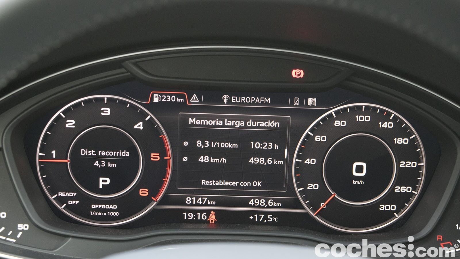 Por un lado, detrás del volante tenemos una gran pantalla de 12,3 pulgadas, el Audi Virtual Cockpit que es la instrumentación digital de la marca que nos permite personalizar los parámetros que queremos ver. Por el otro, el sistema multimedia MMI Navegación Plus, con una pantalla de 8 pulgadas que sobresale en el salpicadero. A diferencia de otras no es táctil, sino que se controla desde el MMI all-in-touch, con una superficie donde sí podemos dibujar letras y ejercer otras funciones.