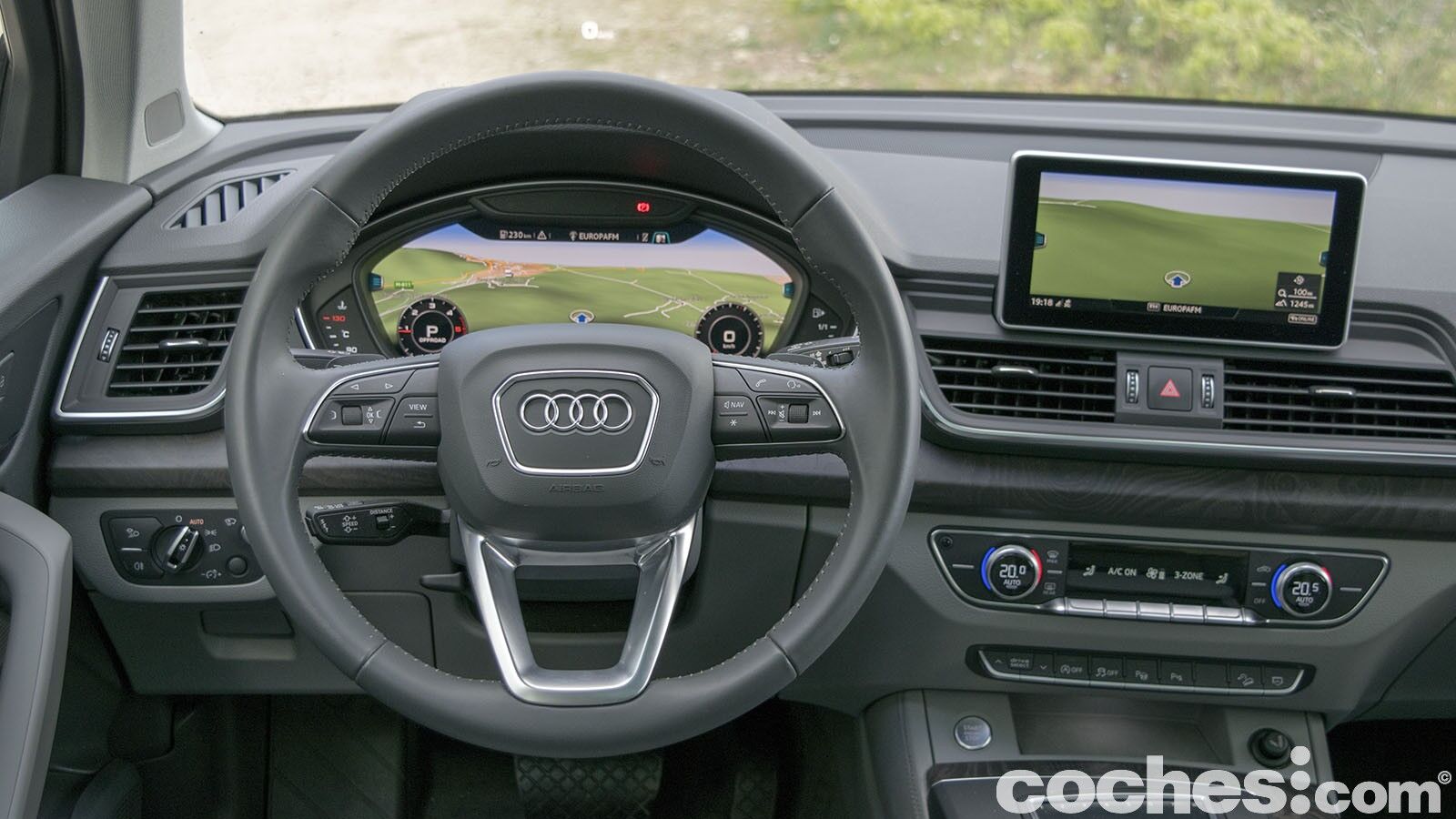 Si decíamos que por fuera el Audi Q5 tenía similitudes con su antecesor, lo cierto es que por dentro los cambios son notables. Lo primero que notamos es su altísima calidad percibida, más propia de un segmento superior. Todos los materiales tienen un tacto más que agradable y su ajuste es sobresaliente. A veces incluso tendremos la sensación de estar a los mandos de su hermano mayor, el Q7.
