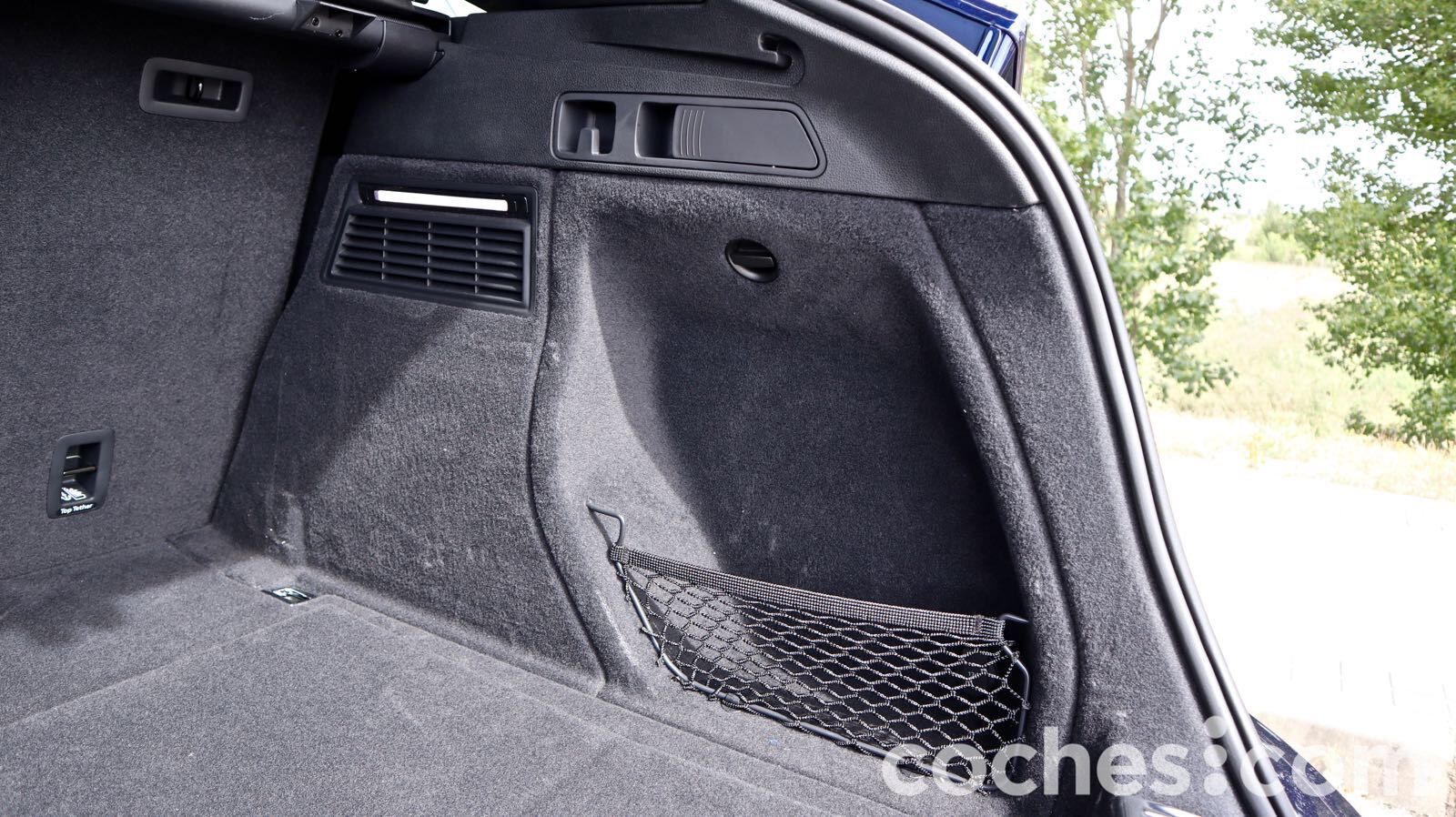 El espacio tiene formas muy regulares, está muy bien rematado y cuenta con elementos para fijar la carga, así como bandas elásticas en los laterales y zonas separadas con redes. Bajo el piso hay un espacio que puede ser compartimentado, pero en nuestra unidad ese espacio lo llenaba casi por completo el subwoofer.