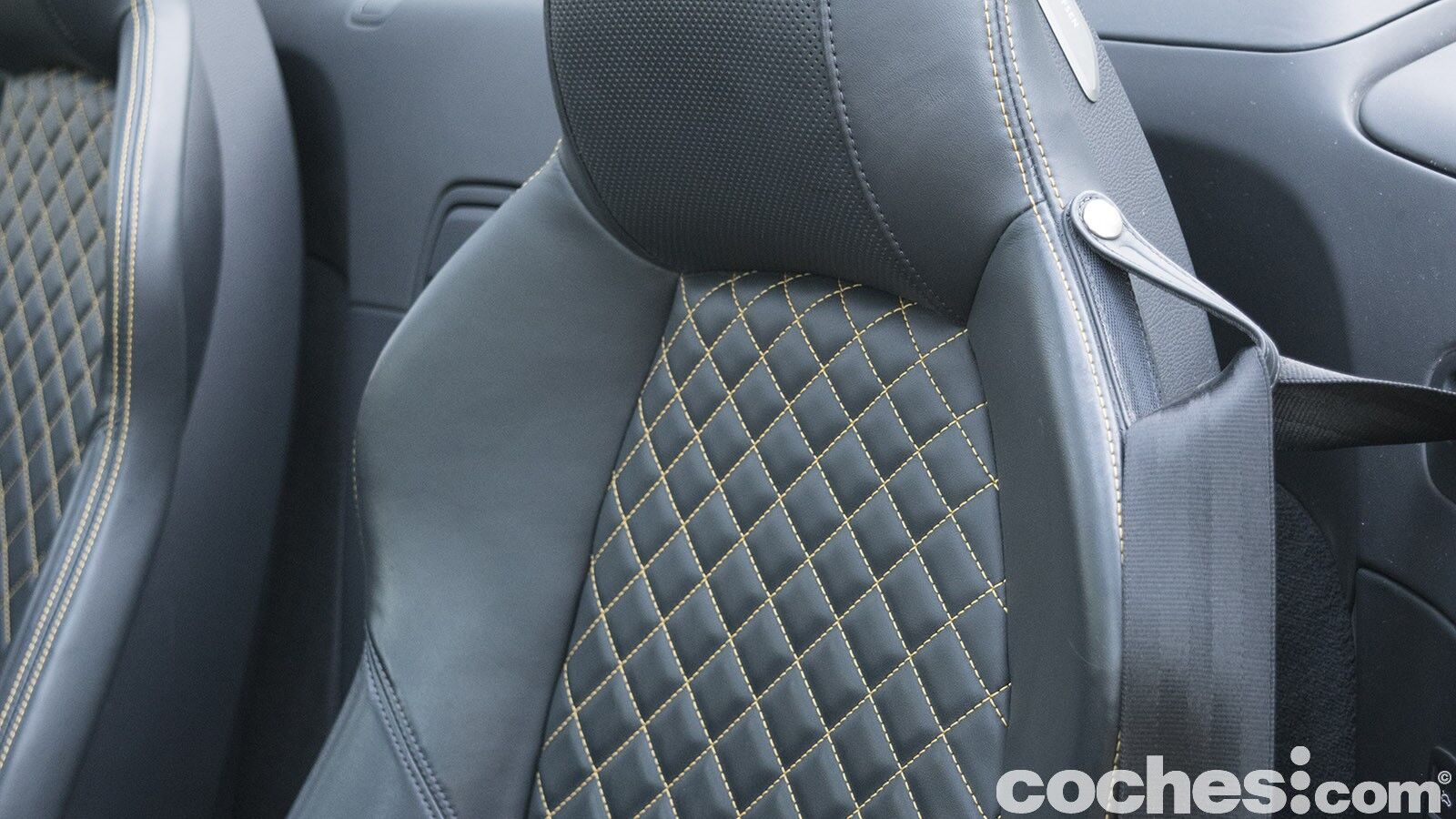 En el interior pasa lo mismo que en el exterior, los asientos deportivos como los nuestros vienen de serie, pero se puede optar por unos tipo bucket. La tapicería de serie es mixta de Alcántara y cuero, por el acabado de nuestra unidad con cuero napa (incluso en el salpicadero), costuras en contraste y motivos de rombos hay que desembolsar 3.001 euros. Por no hablar del volante Performance plus con cuatro pulsadores, que cuesta 2.240 euros.