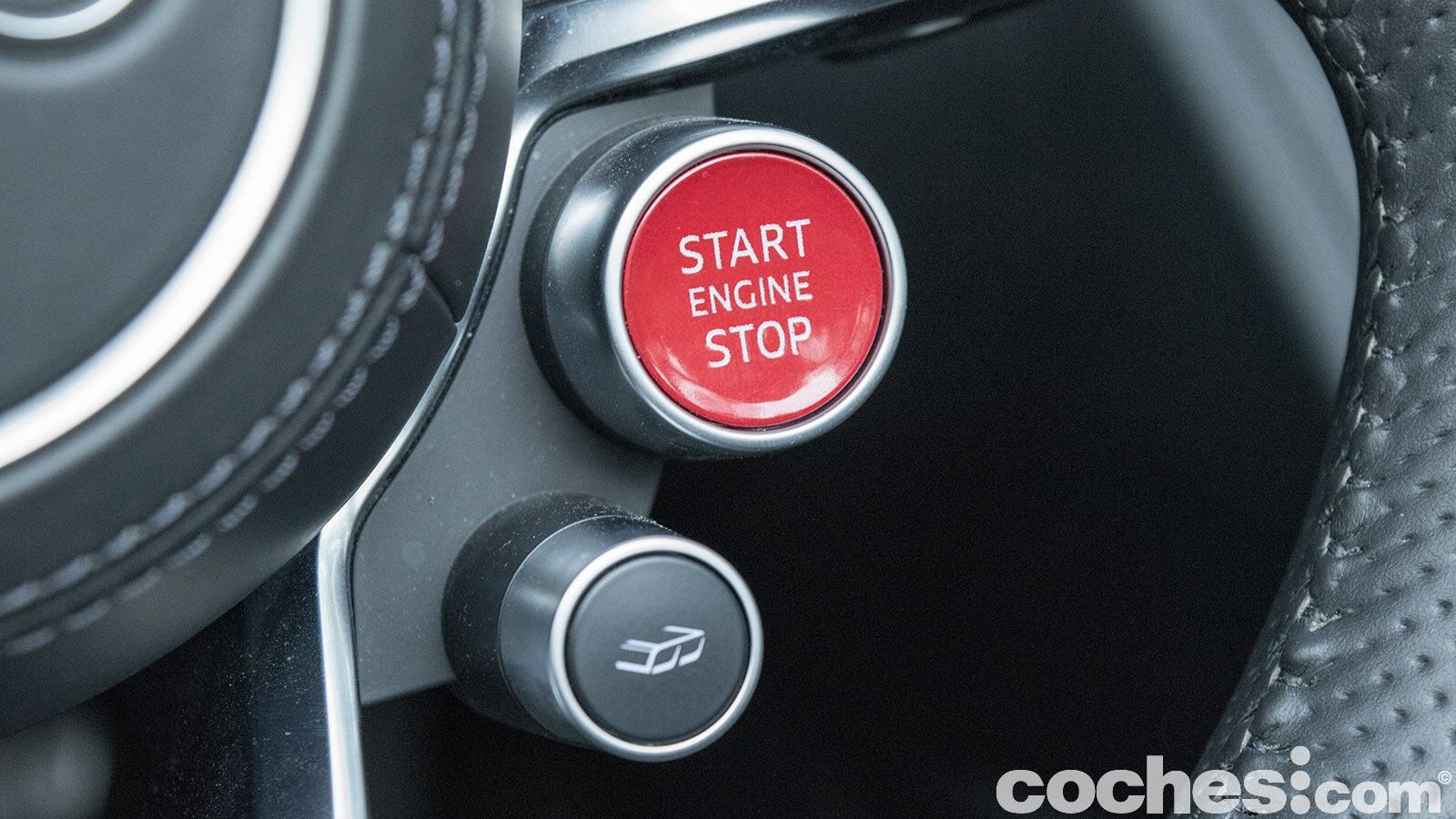 Además de controlar el infoentretenimiento, permite realizar algunas tareas relativas a la conducción. A ambos lados hay unas pequeñas levas, que se nos antojan demasiado pequeñas y similares a las de otros modelos. En la parte inferior derecha en rojo tenemos el botón de arranque y por debajo el que controla el sonido del escape. Al otro lado el botón del Drive Select para cambiar de modo de conducción y justo debajo un botón con una bandera a cuadros que controla el modo Performance, que luego explicaremos.