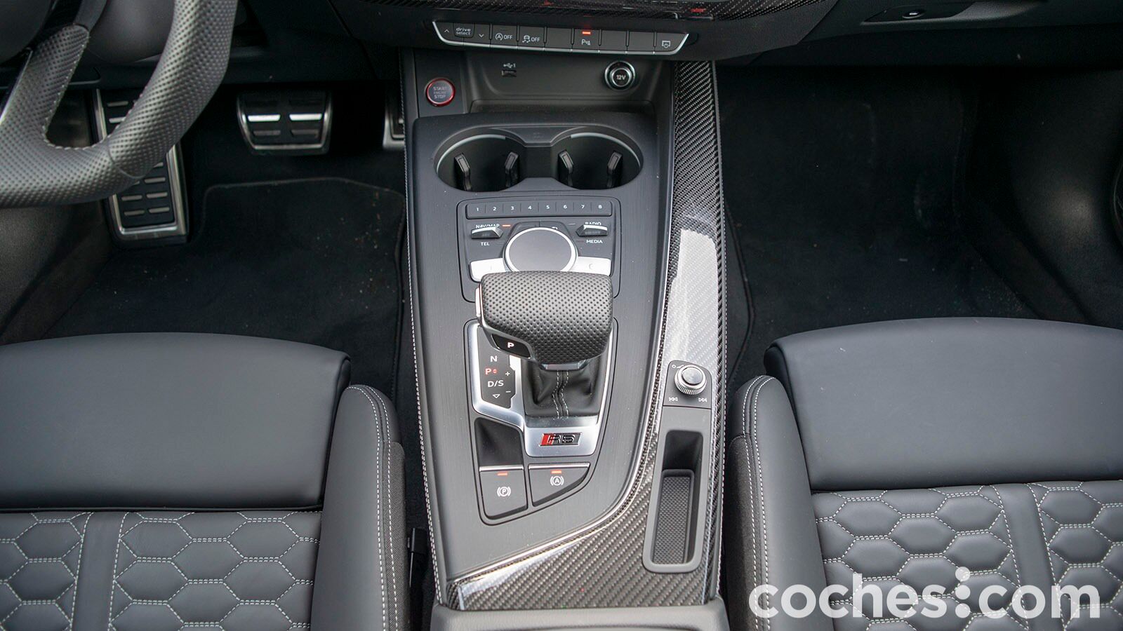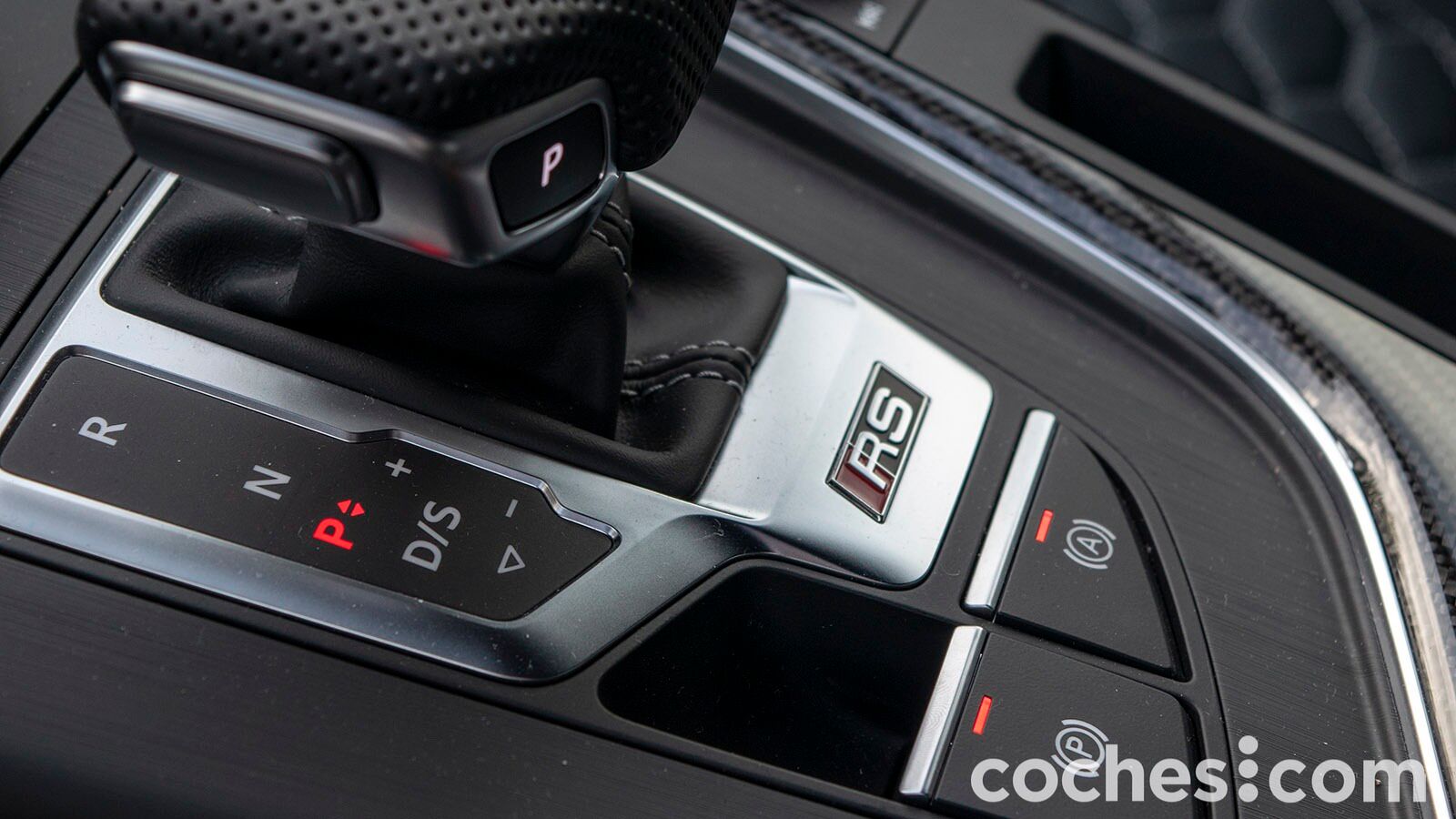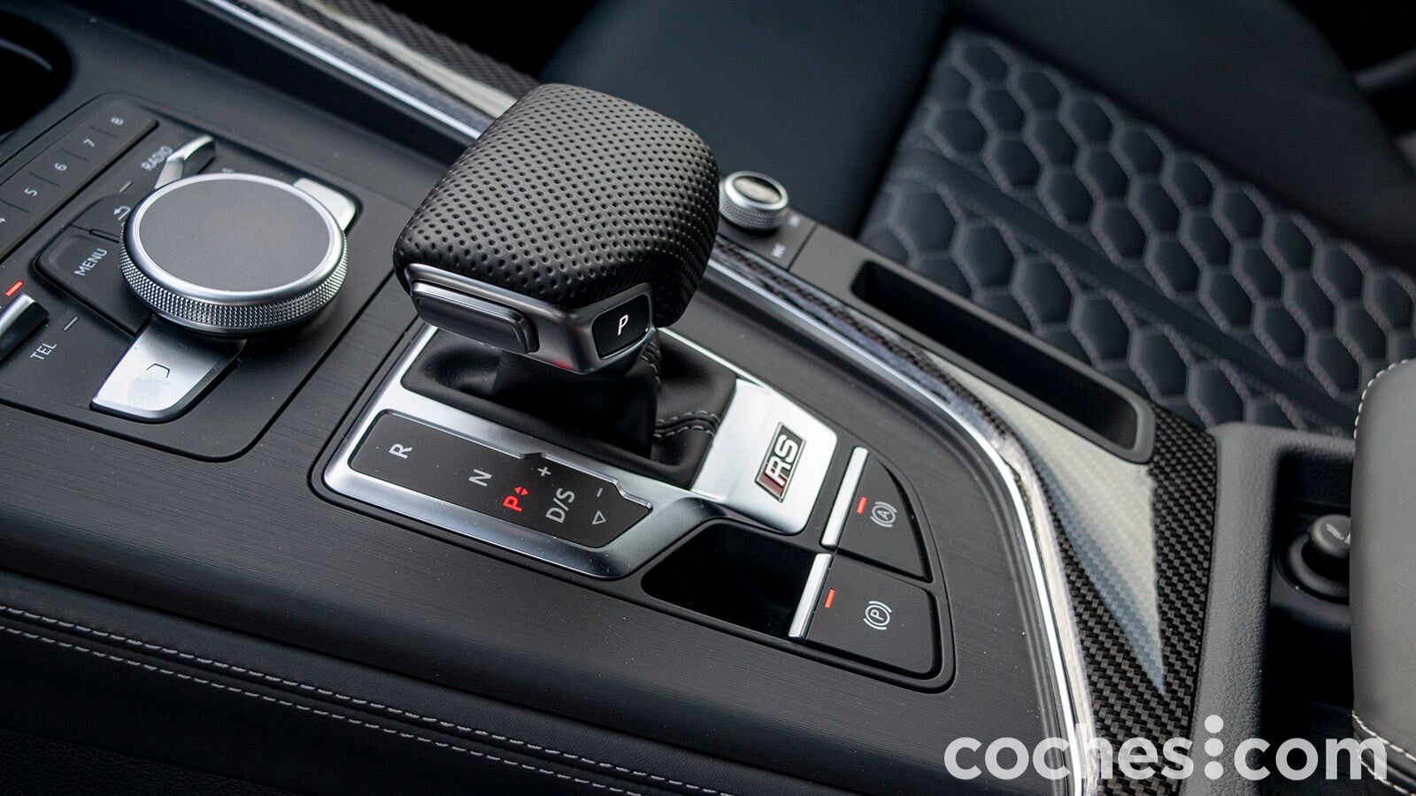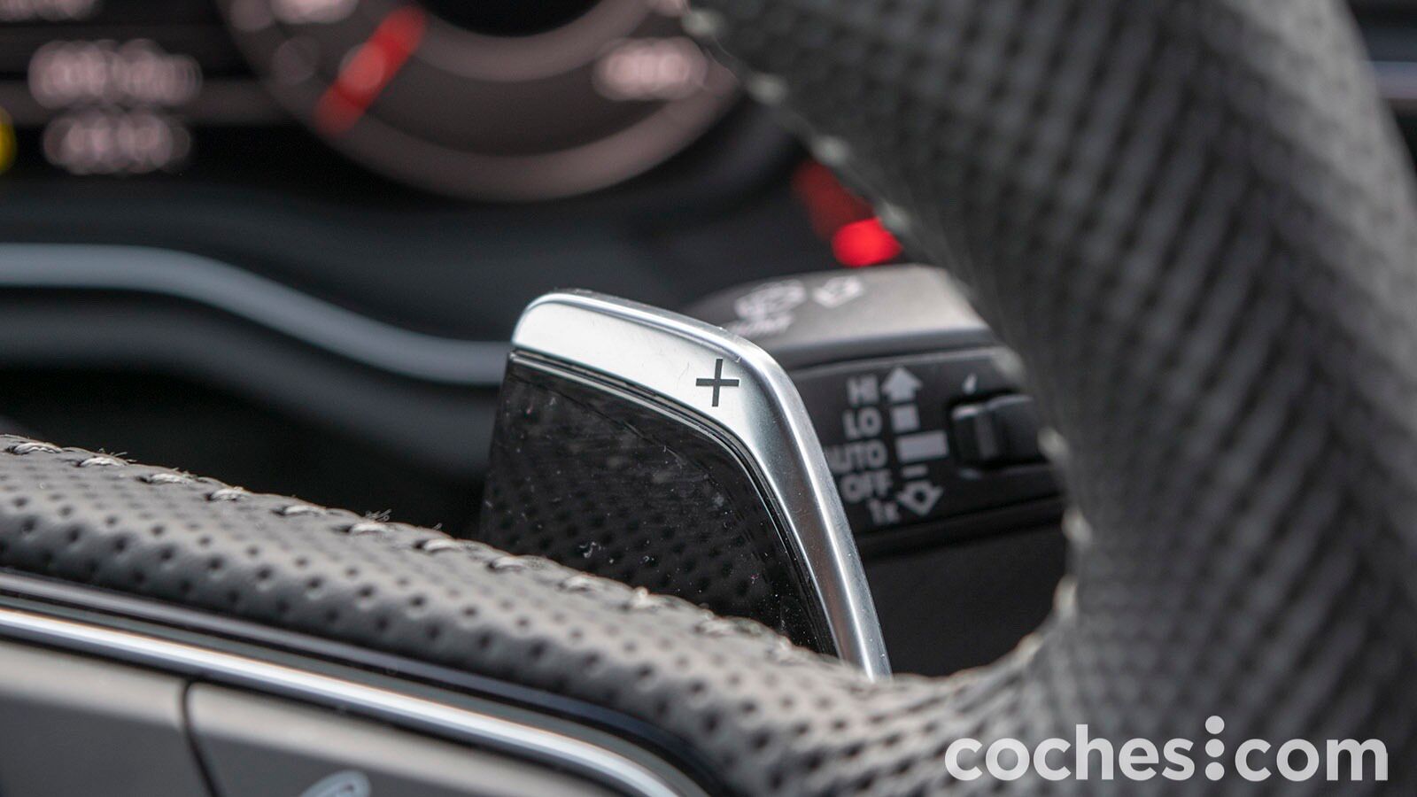 Ya mencionamos que este Audi RS 5 Sportback solamente podía ir con la transmisión automática tiptronic de ocho velocidades, un cambio de convertidor de par. A priori podríamos pensar que una caja de doble embrague sería la opción más acertada para este modelo, pero al probarlo nos cambia la mentalidad. Este tipo de cambio gestiona mejor un par tan elevado y en ningún momento nos ha parecido lento. Destaca por su suavidad, sin que apenas se note la transición entre marchas, además de la precisión que aportan las levas detrás del volante (que podrían ser más grandes).