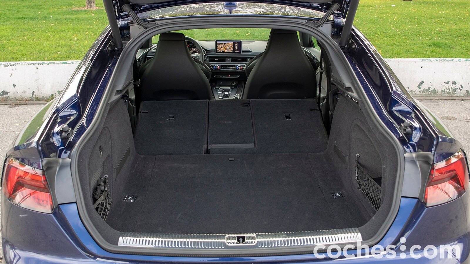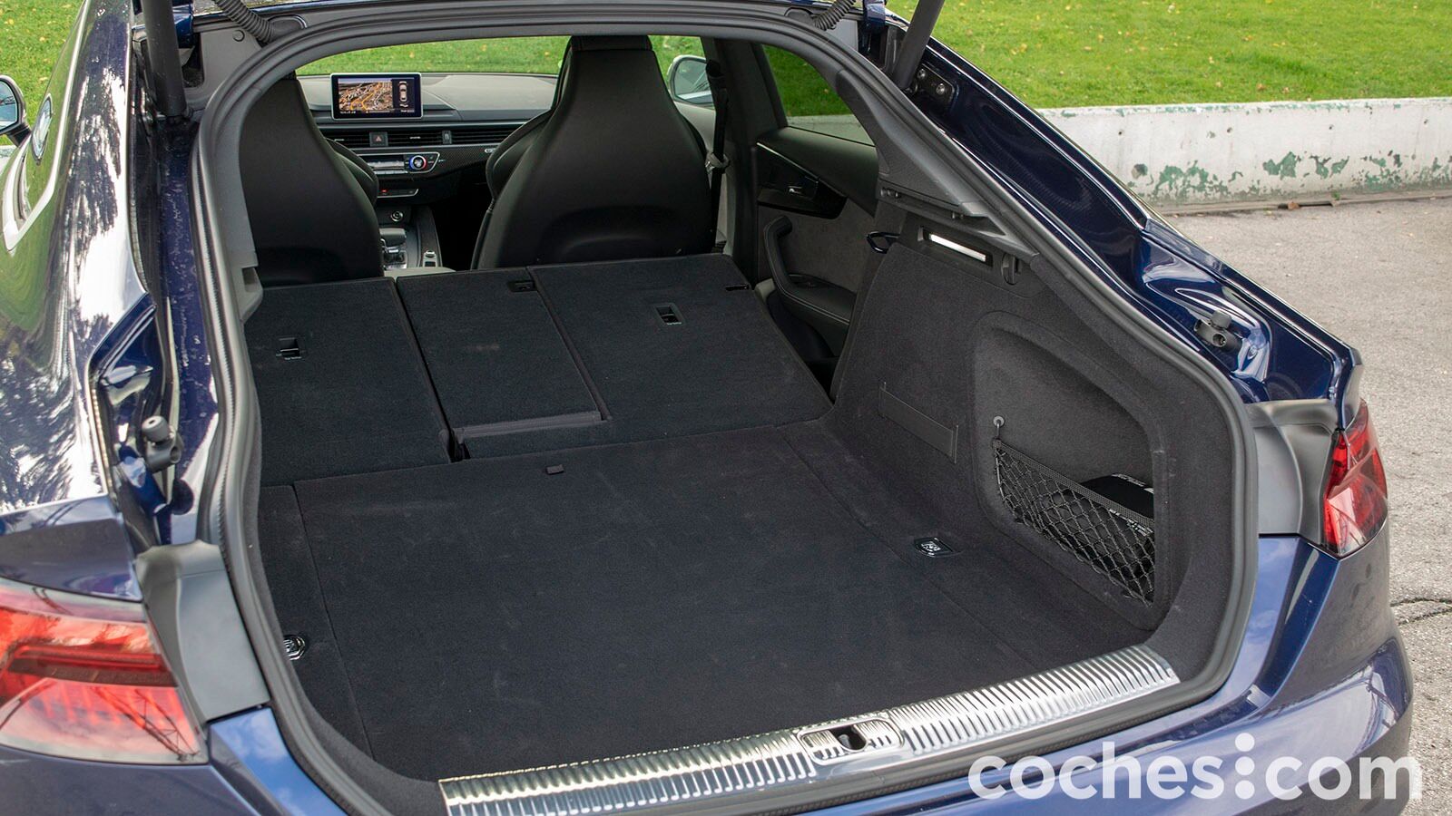 Aunque el Audi A5 Sportback tuviera un maletero de 480 litros (más capaz que el coupé), lo cierto es que en esta versión la capacidad se queda en 465 litros. Es una cifra bastante aprovechable que viene con la ventaja adicional de tener un gran portón trasero, que facilita la introducción de objetos grandes a pesar de que la boca de carga no queda a ras de maletero. Eso sí, las formas que vemos dentro son rectas y muy aprovechables.