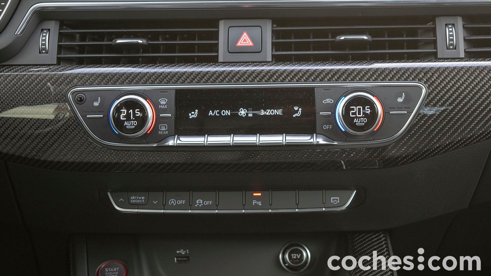 En casi cualquier modelo de los cuatro aros están presentes los modos de conducción del Audi drive select. Aunque es en ejemplares como éste en los que cobran sentido y transforman por completo el comportamiento del vehículo. En un extremo, podemos ir en modo Confort en una berlina cómoda, lista para recorrer cientos de kilómetros sin que pesen y sin que apenas suene. En el otro, con el modo Dynamic soltamos a la bestia y tenemos un vehículo más duro, apto para circuito, que nos deja unos petardeos ejemplares.