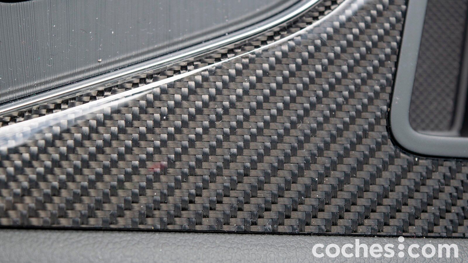 Aunque estamos ante un vehículo de una marca premium y eso se traduce en que también tendremos disponible una generosa lista de elementos opcionales. Nuestra unidad de pruebas estaba plagada de ellos, podíamos encontrar algunos tan característicos como el paquete de fibra de carbono tanto en el exterior como en el interior, una tapicería de cuero completa con diseño de panal, el Head-Up Display, el sistema de sonido Bang & Olufsen con 19 altavoces o un buen número de ayudas a la conducción.