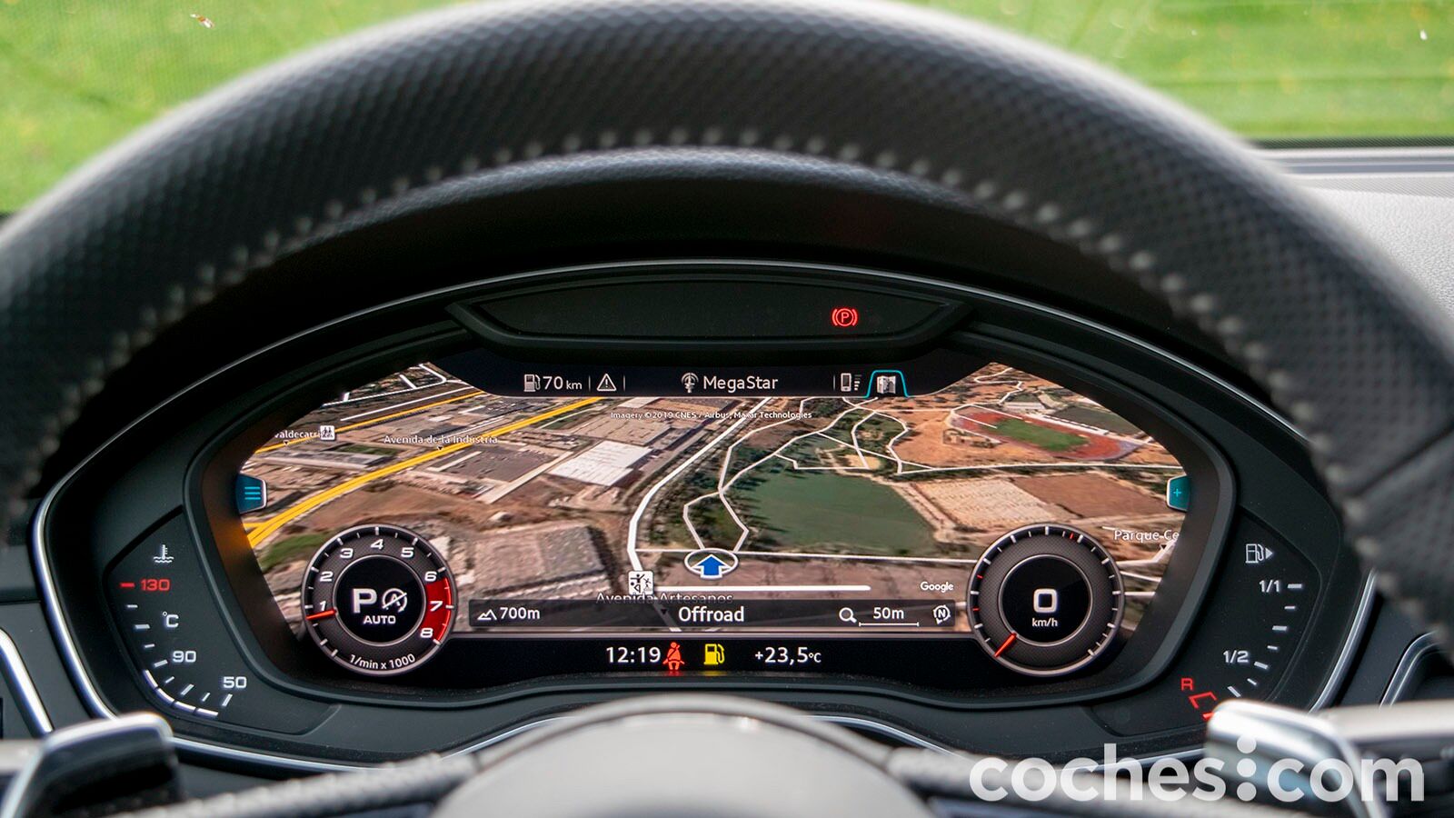En la consola central aparecen esos controles del sistema multimedia y, por detrás, la palanca de cambios con diseño inspirado en la aviación y algunos botones más. Desde el puesto de conductor lo que más se aprecia es el Audi Virtual Cockpit, la instrumentación digital de 12,3 pulgadas que tantas alegrías ha dado a la marca. Como siempre, se controla a través de los mandos del volante multifunción y destaca por toda la información disponible y la personalización.