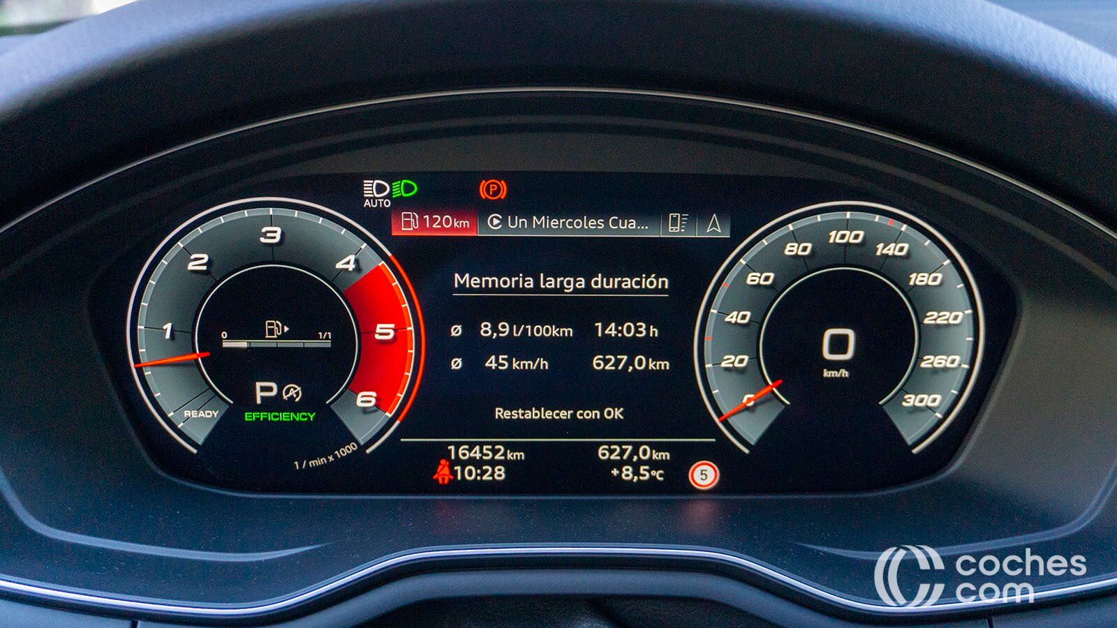 Como buen modelo de los cuatro aros, se puede escoger entre efficiency, comfort, auto, dynamic e individual. Cambia bastante su conducta, sobre todo si comparamos la docilidad del modo más eficiente con la entrega del más deportivo. El Audi S4 Avant es un modelo de contrastes, pues tan pronto puedes estar viajando tranquilamente en autovía gastando alrededor de 6 l/100km, como tan pronto estás en una secundaria disfrutando de sus curvas. Nosotros fuimos más de la segunda opción y por eso nuestra media estuvo en torno a los 8,5 litros.