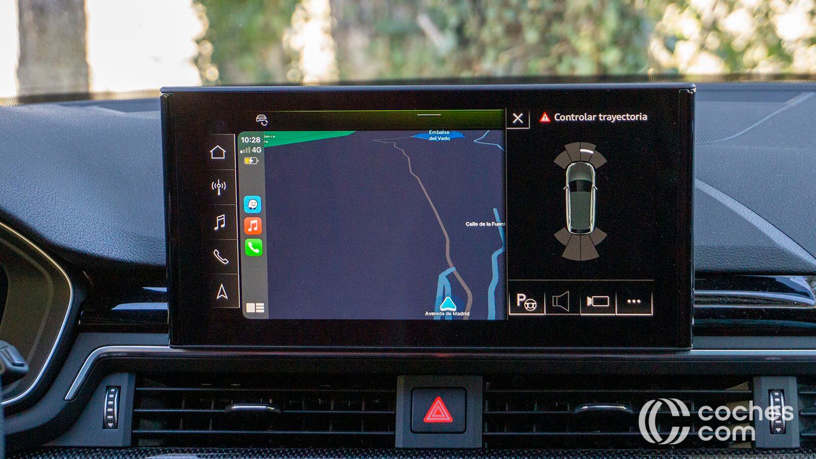 Aunque la pieza más importante para el infoentretenimiento es la pantalla táctil principal de 10,1 pulgadas desde la que se controla el sistema MMI touch. Destaca por la facilidad de uso, gracias a unos menús claros y con gráficos buenos. Es una pantalla precisa y rápida, que además integra una conectividad a la altura. Cuenta con Android Auto y Apple CarPlay de forma inalámbrica, algo que siempre se agradece, lo mismo ocurre con la superficie de carga inductiva alojada bajo el reposabrazos para olvidarnos del móvil mientras conducimos.